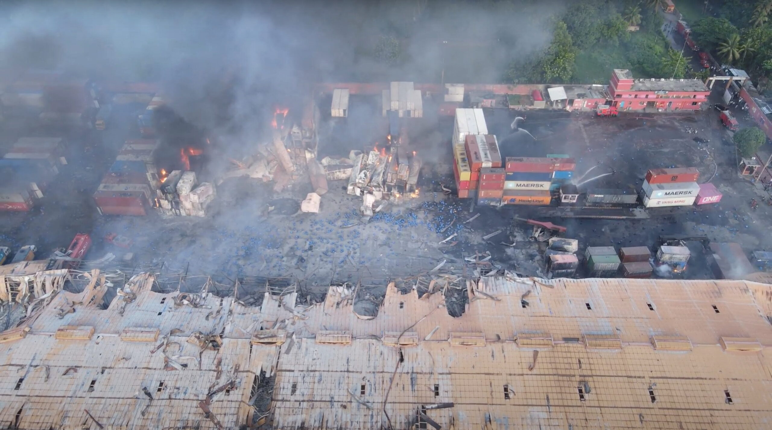 Drone footage shows smoke rising from the spot after a massive fire broke out in an inland container depot at Sitakunda, near the port city Chittagong, Bangladesh, June 5, 2022 in this still image obtained from a handout video. Al Mahmud BS/Handout via REUTERS ATTENTION EDITORS - THIS IMAGE HAS BEEN SUPPLIED BY A THIRD PARTY. MANDATORY CREDIT