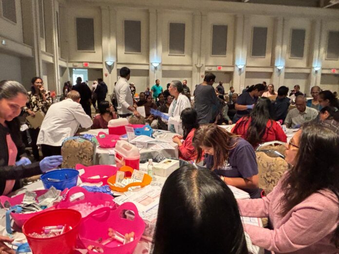 હેલ્થ કેમ્પ ઓફ ન્યૂજર્સી (HCNJ) દ્વારા રવિવાર, 9 નવેમ્બરના રોજ ન્યૂજર્સીના સેકોકસના સ્વામિનારાયણ મંદિર ખાતે 19મા વાર્ષિક આરોગ્ય મેળાનું આયોજન કરવામાં આવ્યું હતું. આ કેમ્પમાં સમુદાયના 200થી વધુ સભ્યોએ ભાગ લીધો અને વિવિધ પ્રકારની આરોગ્ય સેવાઓનો લાભ લીધો હતો. HCNJ, એક 501(c)(3) બિન-નફાકારક સંસ્થા છે, જે 1998થી વાર્ષિક આરોગ્ય મેળાઓનું આયોજન કરે છે. આ સંસ્થાનો હેતુ સાઉથ એશિયન સમુદાયમાં વીમા વગરના અને ઓછો વીમો ધરાવતા લોકોને આરોગ્ય સેવા આપવાનો છે. આ વર્ષના હેલ્થ કેમ્પમાં મેડિકલ, દાંત અને માનસિક આરોગ્ય સંબંધિત વ્યાપક તપાસ, માર્ગદર્શન અને કાઉન્સેલિંગ કરવામાં આવ્યું હતું. કેમ્પના લાભાર્થીને ડાયાબિટીસ, હાયપરટેન્શન, કાર્ડિયોવાસ્ક્યુલર ડિસઓર્ડર, વિવિધ પ્રકારના કેન્સર, માનસિક આરોગ્યની સ્થિતિઓ અને પીડા-સંબંધિત મુદ્દાઓમાં માર્ગદર્શન આપવામાં આવ્યું હતું. આ કેમ્પમાં લોહીના વિવિધ ટેસ્ટ, EKGs, શારીરિક તપાસ, કાર્ડિયોલોજી અને દુખાવા સંબંધિત સલાહ, કેન્સરની તપાસ અને શિક્ષણ, મહિલા આરોગ્યની તપાસ, આહાર સંબંધિત માર્ગદર્શન, સારવાર, વૈકલ્પિક દવા, CPRની તાલીમ અને ઈન્ફલ્યુએન્ઝા વેક્સિનેશન સહિતની ઘણી સેવાઓ પણ આપવામાં આવી હતી.