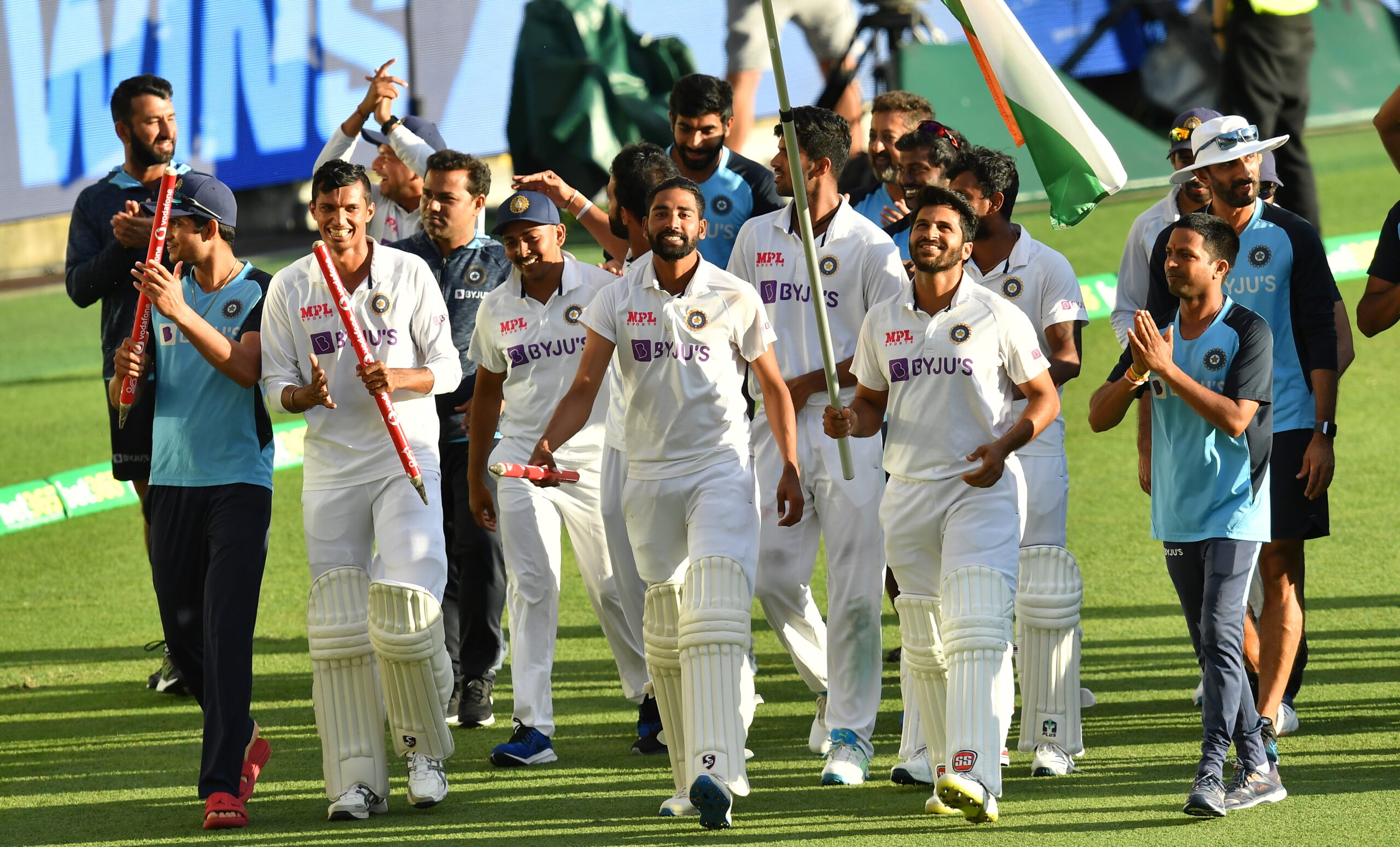ઓસ્ટ્રેલિયાની સામેની ટેસ્ટ સિરિઝમાં ભારતની ક્રિકેટ ટીમના ઐતિહાસિક વિજયને પગલે ભારતીય ક્રિકેટ કંટ્રોલ બોર્ડ (BCCI)એ ટીમ ઈન્ડિયાને પાંચ કરોડ રુપિયાનું બોનસ આપવાની જાહેરાત કરી હતી. ભારતીય ટીમને વડાપ્રધાન નરેન્દ્ર મોદી, ક્રિકેટ બોર્ડના અધ્યક્ષ સૌરવ ગાંગુલી અને સેક્રેટરી જય શાહે પણ ટીમને અભિનંદન આપ્યા હતા. ભારતના અને બીજા દેશના દિગ્ગજ ક્રિકેટરોએ પણ ભારતીય ટીમની જીતને વધાવી દીધી હતો.