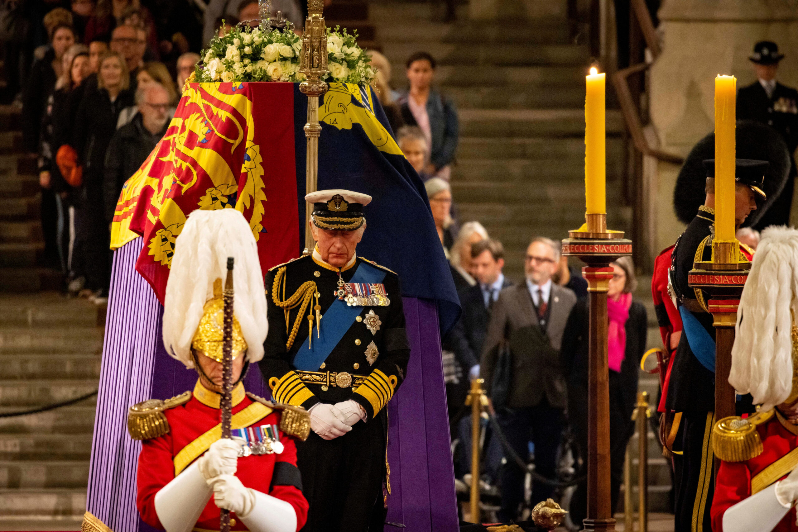 સ્થાનિક સમય પ્રમાણે સવારે 11 વાગ્યે કિંગ ચાર્લ્સ III એ લંડનના વેસ્ટમિન્સ્ટર હોલથી વેસ્ટમિન્સ્ટર એબી સુધીના માર્ગ પર માતાના કોફિનને લઇ જતી યાત્રાનું નેતૃત્વ કર્યું હતું. મહારાણીનું કોફિન ઐતિહાસિક 11મી સદીના એબીમાં પ્રવેશતાં જ સ્ટેટ ફ્યુનરલની શરૂઆત થઈ હતી. સ્વર્ગસ્થ રાણીના સાર્વભૌમના જીવનના દરેક વર્ષને ચિહ્નિત કરવા લંડનના પ્રતિષ્ઠિત સીમાચિહ્ન સમાન અને રાણીના નામ પરથી રાખવામાં આવેલ (બિગ બેન) એલિઝાબેથ ટાવરમાં દર મિનિટે 96 વખત ધંટ વગાડવામાં આવ્યો હતો અને અને સ્તોત્રો ગૂંજવા લાગ્યા હતા.