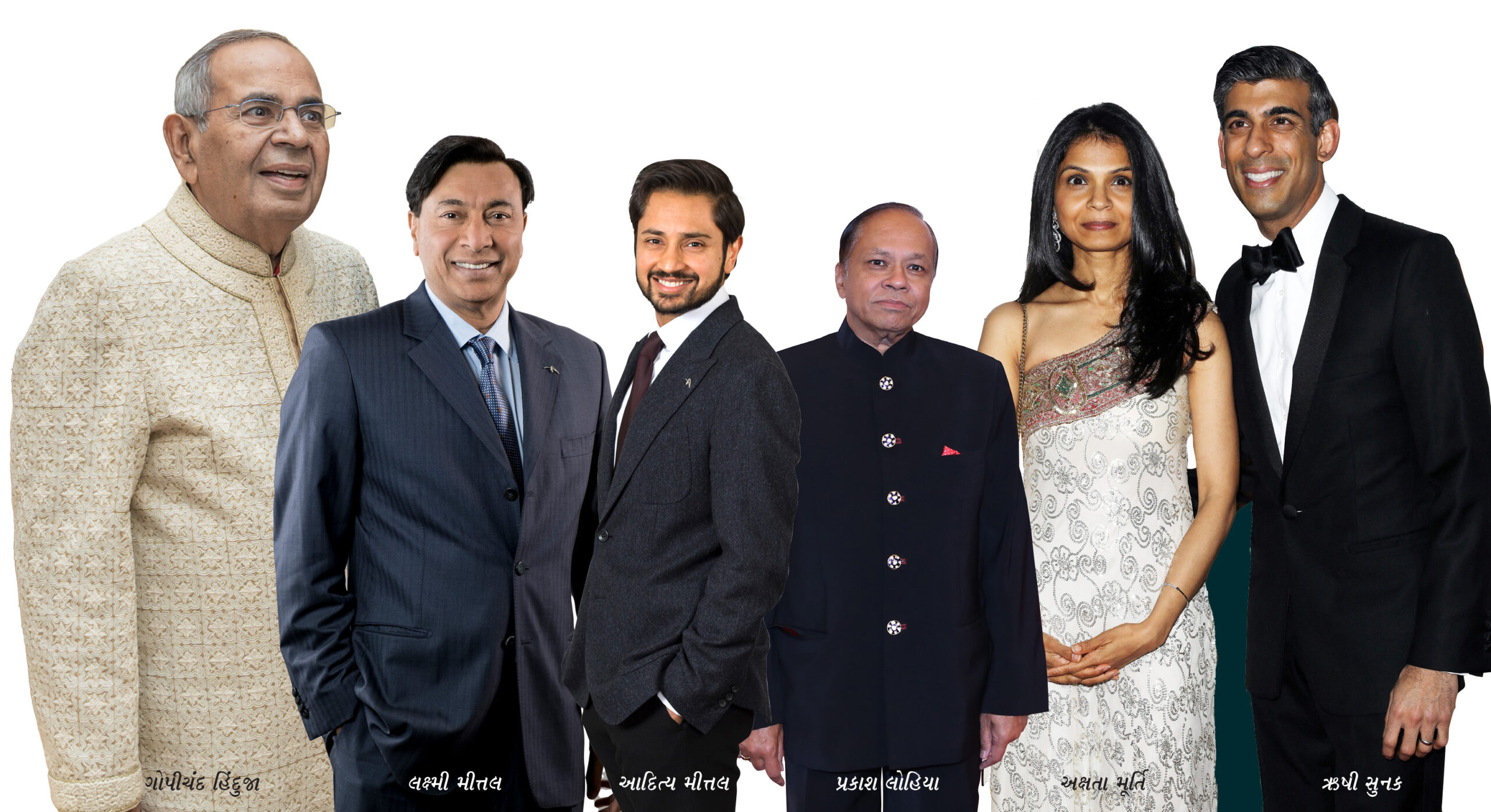 ર્ષોની જેમ જ હિન્દુજા પરિવાર £30.5 બિલિયનની સંપત્તિ સાથે રેન્કિંગમાં સૌથી ટોચ પર છે, ત્યારબાદ લક્ષ્મી મિત્તલ અને તેમના પુત્ર આદિત્ય (£12.8 બિલિયન); શ્રી પ્રકાશ લોહિયા અને પરિવાર (£8.8 બિલિયન) અને નિર્મલ સેઠિયા (£6.5 બિલિયન)નો નંબર આવે છે.