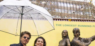 લંડનના લેસ્ટર સ્ક્વેર ખાતે શાહરુખ-કાજોલે તેમની કાંસ્ય પ્રતિમાનું અનાવરણ કર્યું