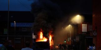 લીડ્સમાં ભીષણ તોફાનોઃ બસ સળગાવાઈ, પોલીસ કાર ઉથલાવી દેવાઈ