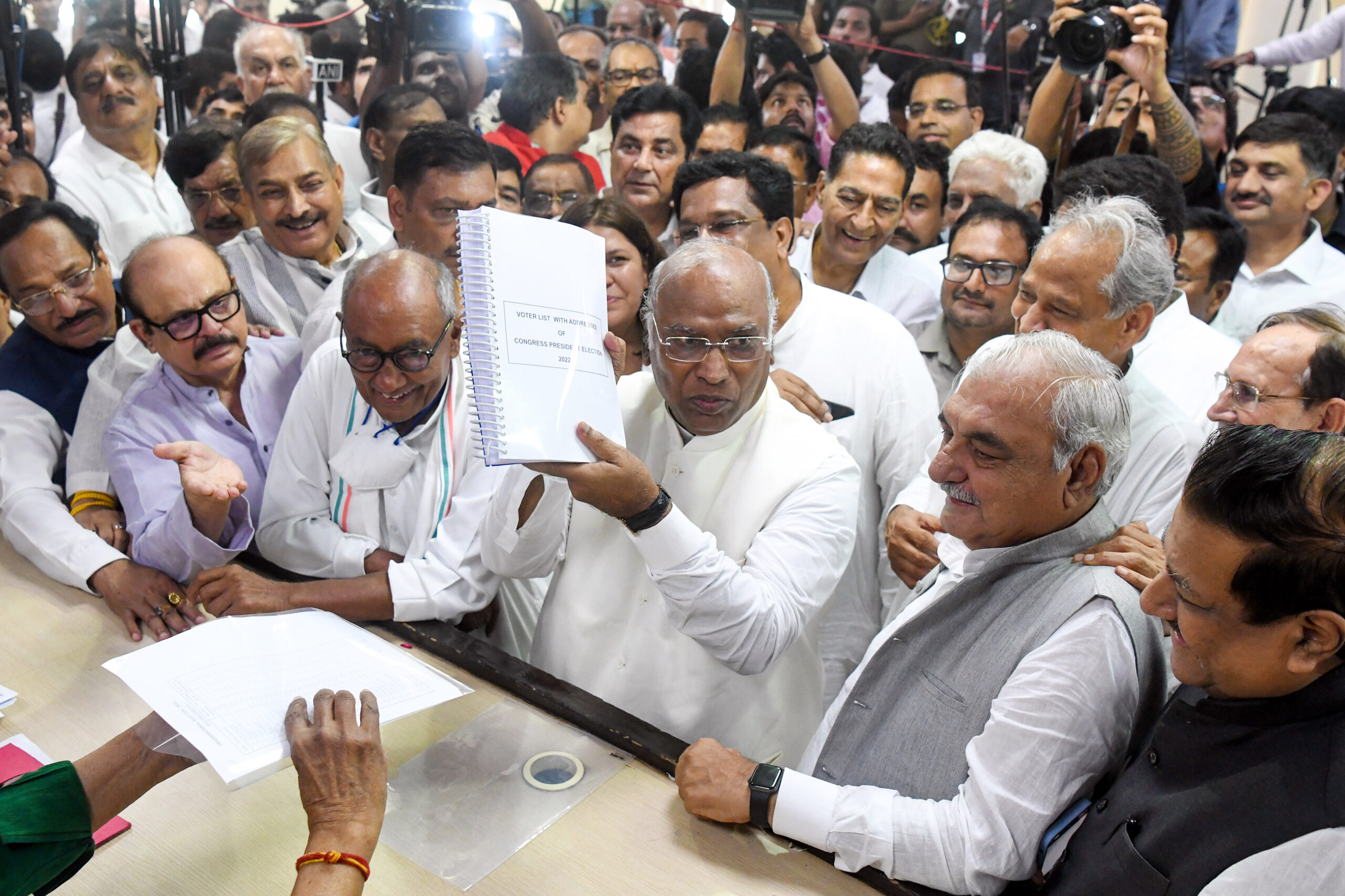 કોંગ્રેસની સેન્ટ્રલ ઇલેક્શન ઓથોરિટીના ચેરમેન મધુસૂદન મિસ્ત્રી સમક્ષ થરુરે ઉમેદવારીપત્રોના પાંચ સેટ ભર્યા હતા. ઝારખંડના ભૂતપૂર્વ પ્રધાન ત્રિપાઠીએ એક સેટ ભર્યો હતો. જોકે તેમનું ઉમેદવારીપત્ર રદ થયું હતું.ખડગેએ પણ એકથી વધુ સેટ ભર્યા હતા. ખડગેને ગાંધી પરિવારનું સમર્થન હોવાનું માનવામાં આવે છે. વરિષ્ઠ નેતાઓ અશોક ગેહલોત અને દિગ્વિજય સિંહ અધ્યક્ષપદની રેસમાંથી બહાર થઈ ગયા હતા. ગેહલોતે ગુરુવારે ચૂંટણી ન લડવાની જાહેરાત કરી હતી, જ્યારે દિગ્વિજયે શુક્રવારની સવારે પીછેહટ કરી હતી.