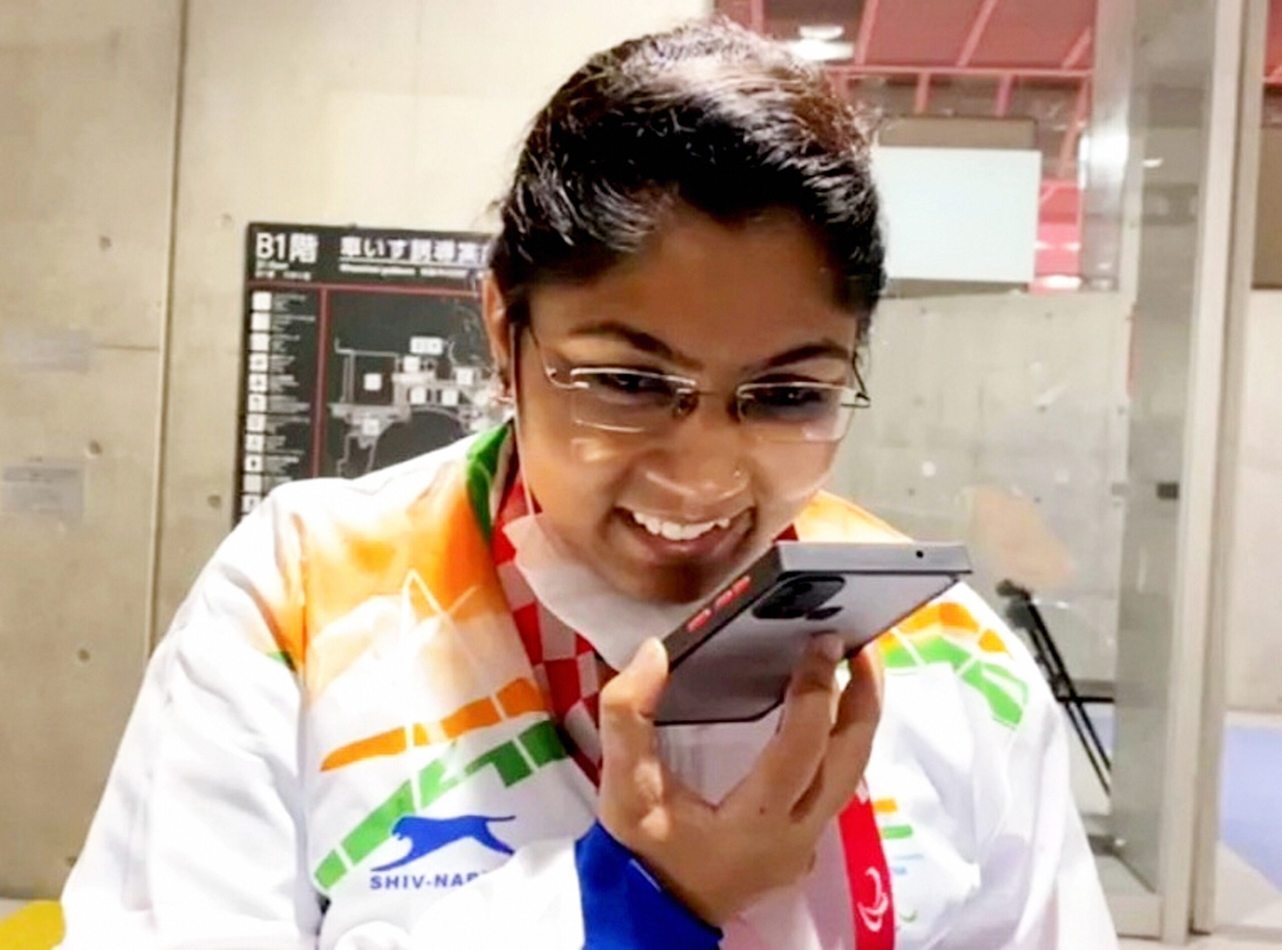 ભારતના વડાપ્રધાન નરેન્દ્ર મોદીએ સિલ્વર મેડલ વિજેતા ભાવિના પટેલને ફોન કરીને અભિનંદન આપ્યા હતા. (PTI Photo)TWITTER IMAGE POSTED BY @Media_SAI ON SUNDAY, AUGUST 29, 2021