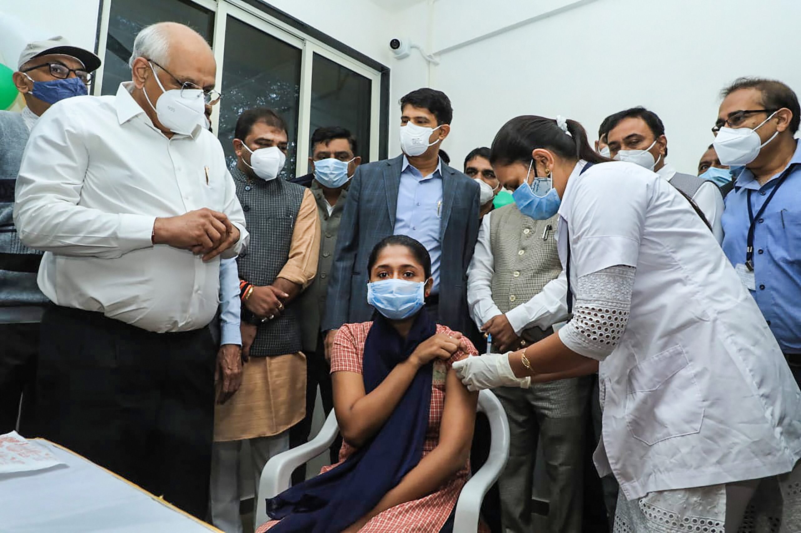 ગુજરાતમાં મુખ્યપ્રધાન ભૂપેન્દ્ર પટેલે સોમવાર, 3 જાન્યુઆરીથી 15-18 વર્ષના બાળકોના રસીકરણનો શુભારંભ કરાવ્યો હતો.. તેમણે ગાંધીનગર જિલ્લામાં કોબામાં આવેલી સ્કૂલમાં સવારે અભિયાનનો પ્રારંભ કરાવ્યા પછી બાળકોના રસીકરણ સેન્ટર પર લાઈનો લાગી રહી હતી.