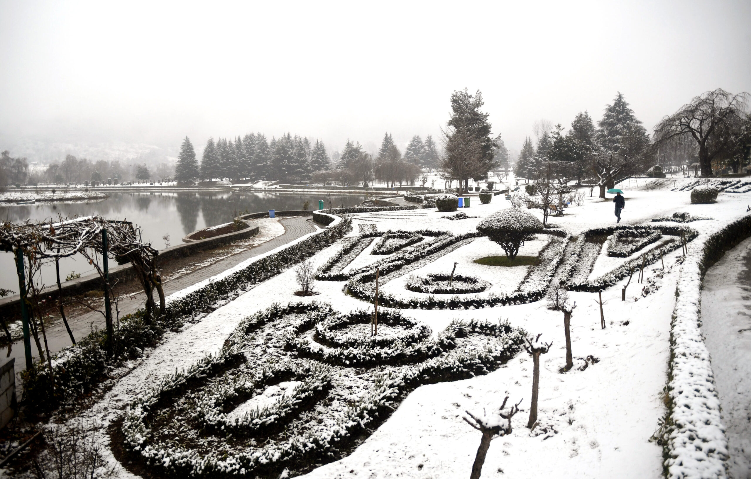 શ્રીનગર સોમવારે બરફની ચાદરમાં ઢંકાઈ ગયું હતું. (ANI PHOTO)