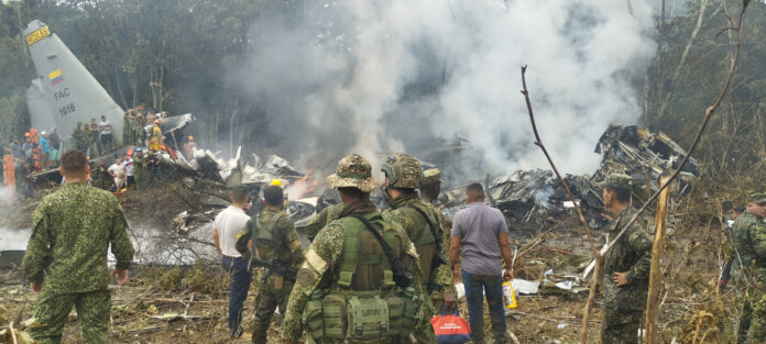 કોલંબિયાનું એક મિલિટરી વિમાન સોમવારે ક્રેશ થતાં ઓછામાં ઓછા 66 લોકોના મોત થયાં હતાં અને ચાર લોકો લાપતા બન્યાં હતાં. લોકહીડ માર્ટિન દ્વારા નિર્મિત હર્ક્યુલસ C-130 પરિવહન વિમાનમાં 128 લોકો સવાર હતાં, જેમાં 11 વાયુસેનાના સભ્યો, 115 સૈનિકો અને બે રાષ્ટ્રીય પોલીસ અધિકારીઓનો સમાવેશ થાય છે. બચાવકર્તાઓએ ડઝનેક બચી ગયેલા લોકોને નજીકની હોસ્પિટલોમાં ખસેડ્યા હતાં.