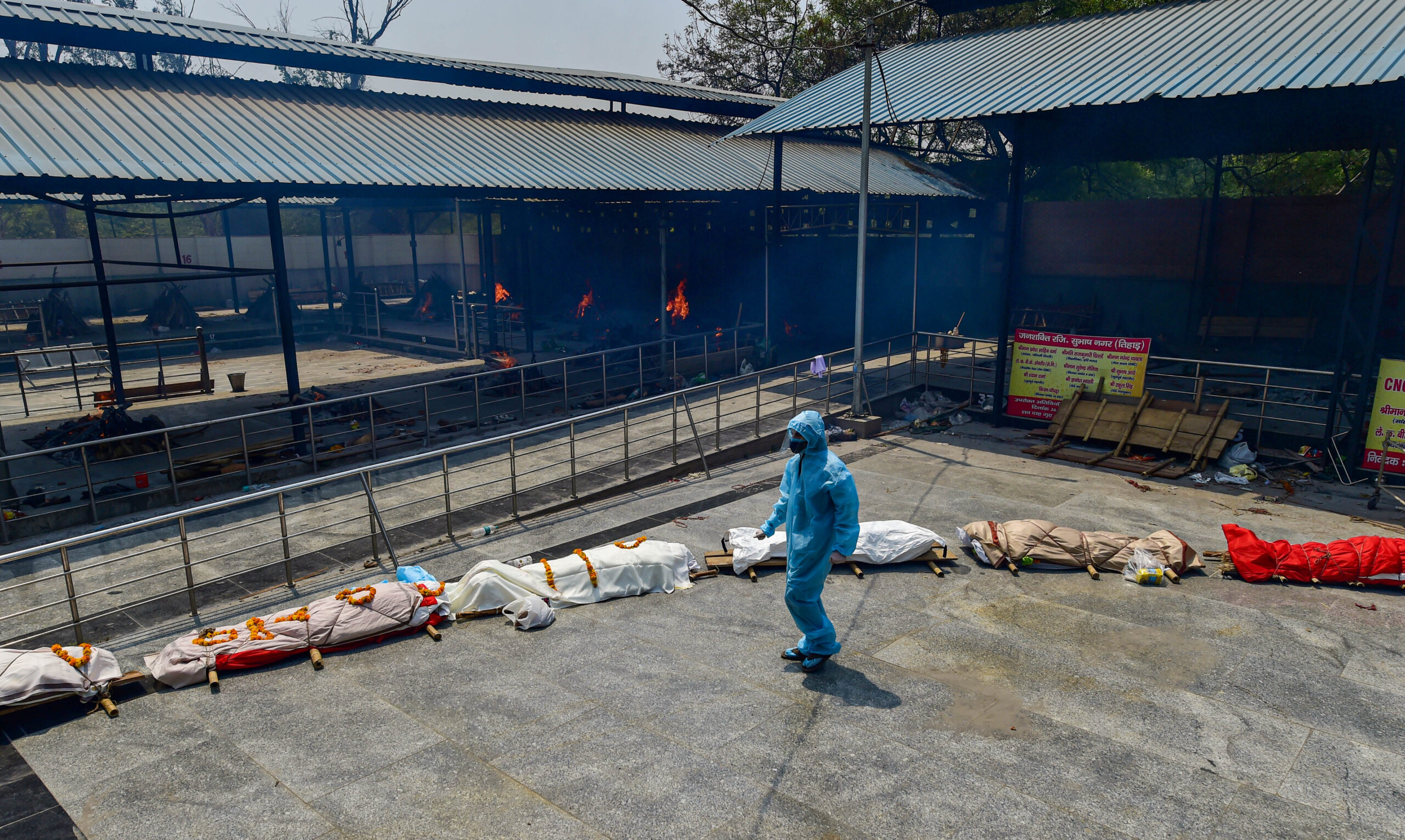 દિલ્હીના મંગળવારે એક સ્મશાનમાં 50 ચિતાઓ સળગી રહી હતી અને અંતિમસંસ્કાર માટે બીજા મૃતદેહો રાહ જોઇ રહ્યાં હતા. પરિવારજનોએ જણાવ્યું હતું કે તેમનો વારો 16થી 20 કલાક પછી આવશે.