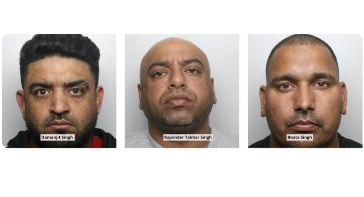 ડર્બીના 35 વર્ષીય બુટા સિંહને કુલ ચાર વર્ષની જેલ, ટિપ્ટનના 35 વર્ષીય દમનજીત સિંહને કુલ ત્રણ વર્ષ અને ચાર મહિનાની અને હડર્સફિલ્ડના 42 વર્ષીય રાજવિંદર તખ્ર સિંહને કુલ ત્રણ વર્ષ અને 10 મહિનાની સજા ફટકારવામાં આવી હતી. ત્રણેય લોકોએ ખોટું કામ કરવાનો ઇનકાર કર્યો હતો.