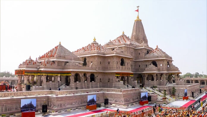 અયોધ્યામાં રામજન્મભૂમિ મંદિરમાં મંગળવાર, 25 નવેમ્બરે એક પવિત્ર સમારંભમાં વડાપ્રધાન નરેન્દ્ર મોદીએ ધ્વજારોહણ કર્યું હતું. મોદીએ સાધુઓ-સંતો, મહાનુભાવો અને રામ જન્મભૂમિ ટ્રસ્ટના સભ્યોની હાજરીમાં ધાર્મિક વિધિઓઓ સાથે 22 ફૂટની ધર્મધજાનું વિધિપૂર્વક આરોહણ કર્યું હતું.