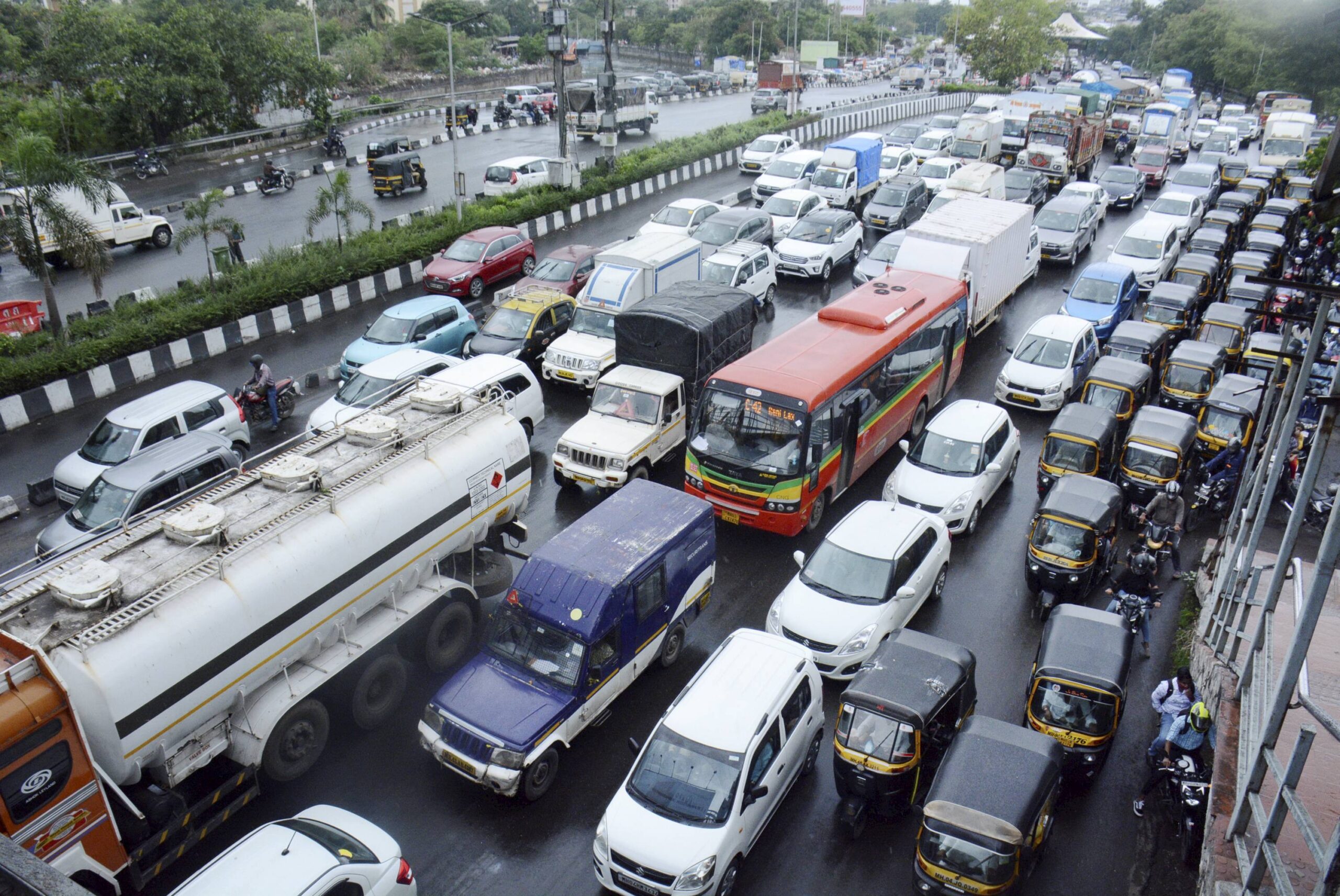 મુંબઈમાં તબક્કાવાર ધોરણે અનલોકિંગની પ્રક્રિયા ચાલુ થયા બાદ સાત જૂન 2021ના રોજ મુલુંડ ટોલ નાકા નજીક ટ્રાફિક જામ થયો હતો. (PTI Photo)