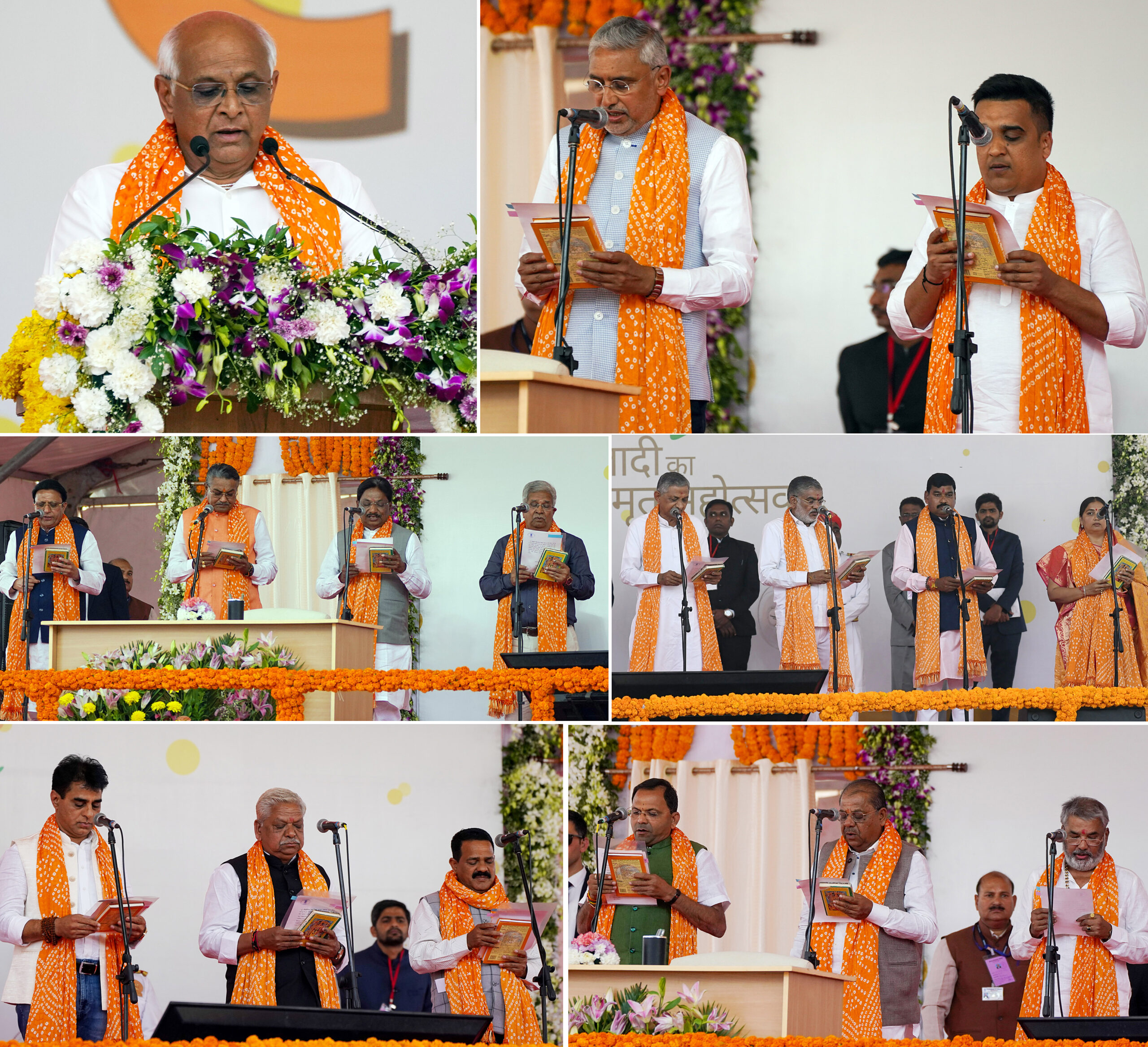 ગુજરાતની વિધાનસભાની ચૂંટણીમાં સતત સાતમી વખત ભાજપના ઐતિહાસિક વિજય પછી સોમવાર, 12 ડિસેમ્બરે ગાંધીનગરમાં યોજાયેલા એક ભવ્ય સમારંભમાં ભૂપેન્દ્ર પટેલે બીજી વખત રાજ્યના મુખ્યપ્રધાન તરીકે શપથ લીધા હતા. મુખ્યપ્રધાનની સાથે કેબિનેટ રેન્કના આઠ સહિત 16 પ્રધાનોએ હોદ્દો અને ગુપ્તતાના શપથ લીધા હતા. ગુજરાતનું આ સોથી નાનું પ્રધાનમંડળ છે. જોકે પ્રધાનમંડળમાં માત્ર એક જ મહિલાનો સમાવેશ કરાયો છે.