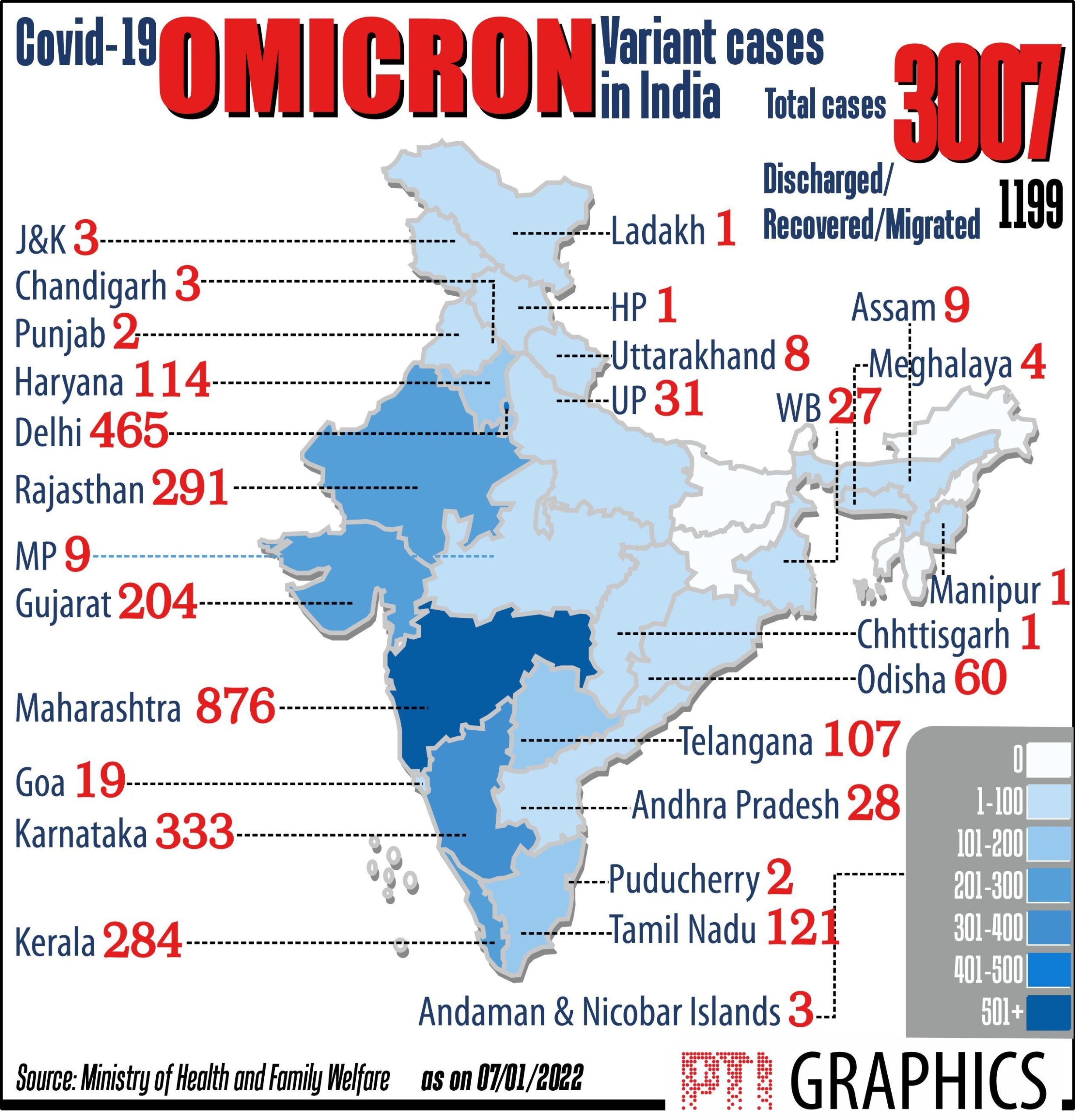 બીજી તરફ કોરોનાના નવા વેરિયન્ટ ઓમિક્રોનના દેશમાં નવા 377 કેસ નોંધાયા હતા. તેનાથી ઓમિક્રોનના કેસની સંખ્યા વધીને 3,007 થઈ હતી. ઓમિક્રોન અત્યાર સુધી દેશના 27 રાજયોમાં ફેલાઈ ચુક્યો હતો. સૌથી વધુ કેસ 876 કેસ મહારાષ્ટ્રમાં છે. દિલ્હી 465 કેસ સાથે બીજા ક્રમે છે.