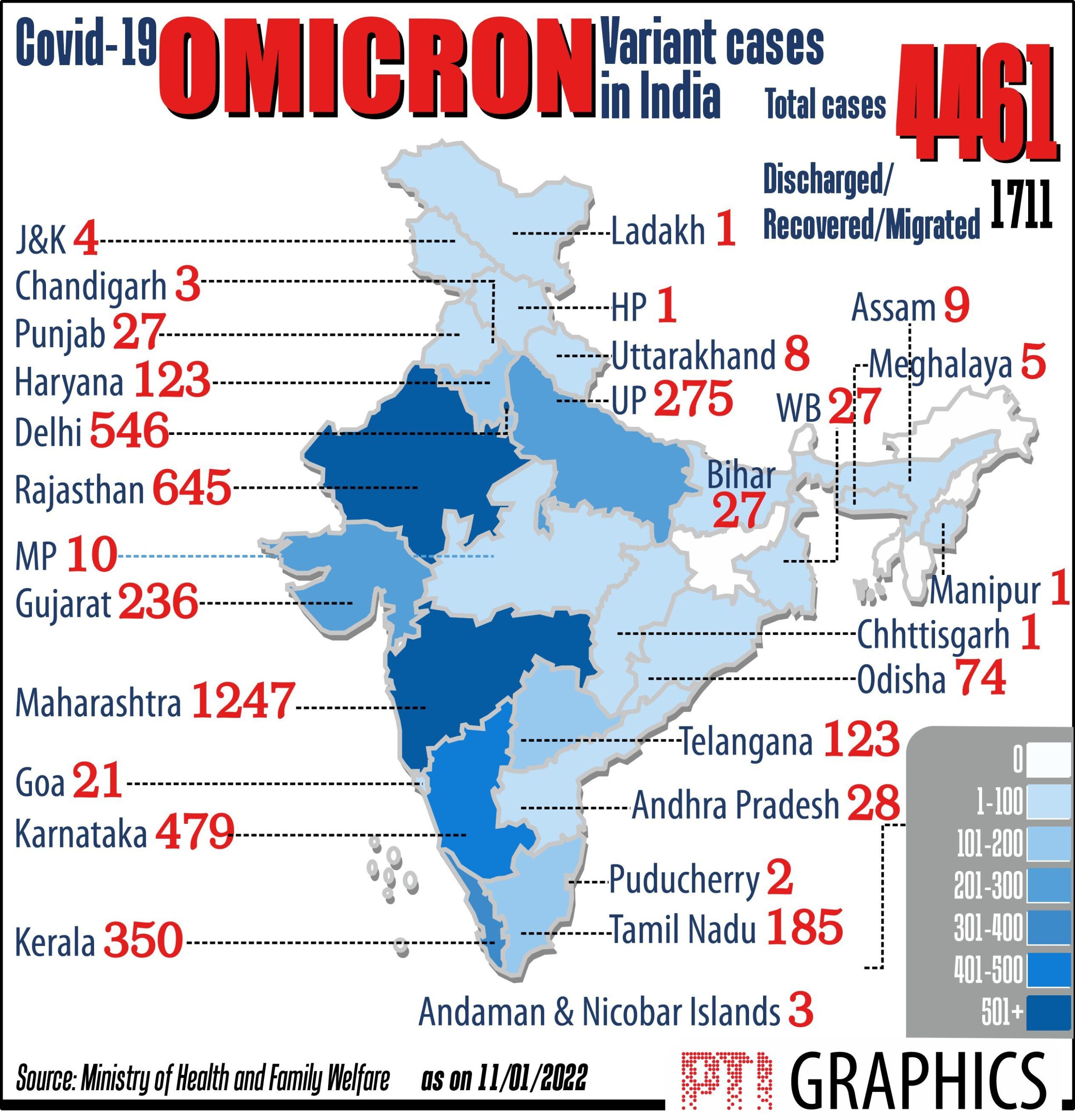 મંત્રાલયના જણાવ્યા અનુસાર દેશમાં કોરોનાના એક્ટિવ દર્દીઓની સંખ્યા વધીને 8.21 લાખ થઈ હતી, જે 208 દિવસમાં સૌથી વધુ છે. ઓમિક્રોનના કુલ 4,461 કેસોમાંથી સૌથી વધુ કેસ 1,247 કેસ મહારાષ્ટ્રમાં દેશમાં એક્ટિવ કેસની સંખ્યા કુલ કેસની 2.29 ટકા છે અને કોરોના રિકવરી રેટ ઘટીને 96.36 ટકા થયો છે. ઓમિક્રોનના કુલ દર્દીમાંથી અત્યાર સુધી 1711 દર્દીઓ સાજા પણ થઈ ચુકયા છે