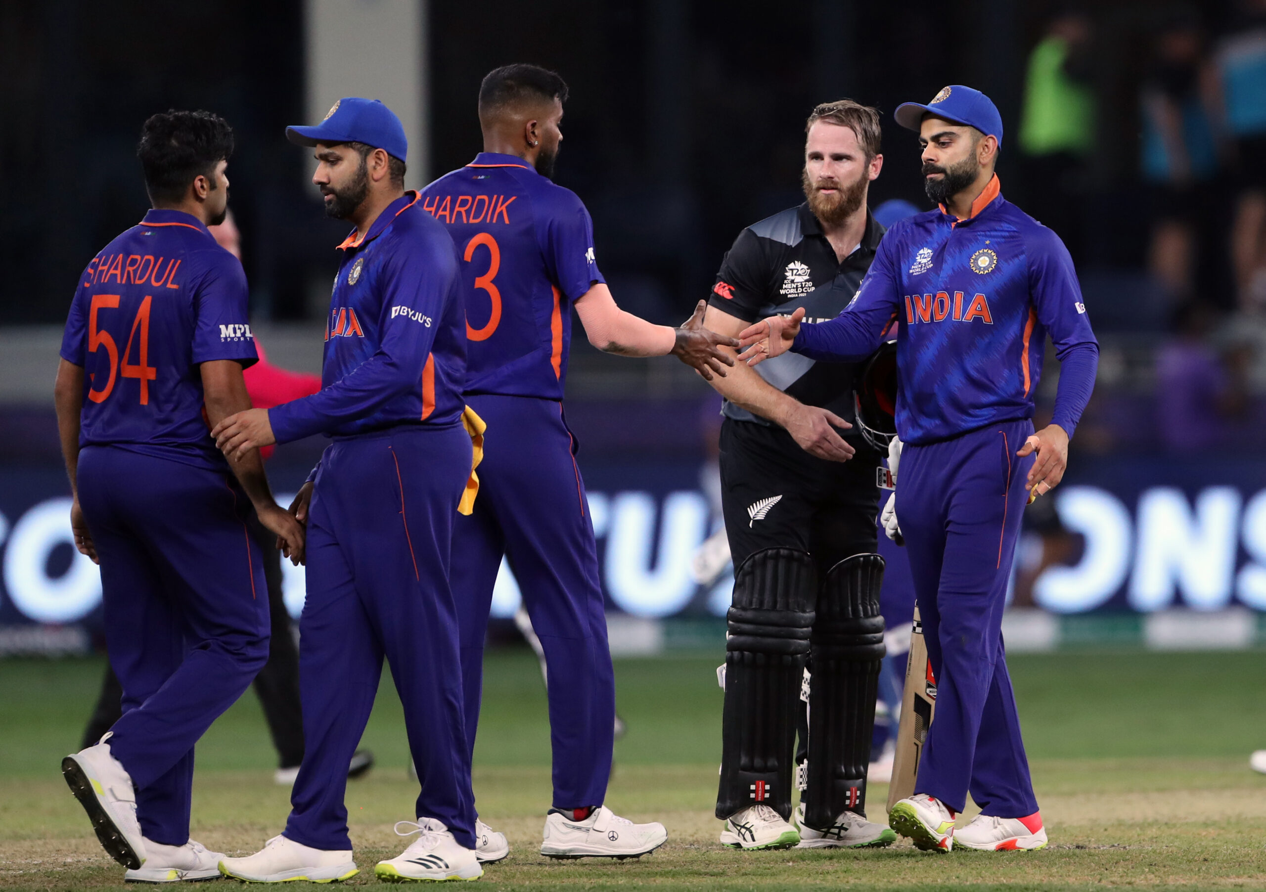 દુબઇ ઇન્ટરનેશનલ સ્ટેડિયમમાં ભારત અને ન્યૂઝિલેન્ડ વચ્ચેની ટી-20 વર્લ્ડકપની મેચ બાદ ભારતની ટીમ અને ન્યૂઝિલેન્ડના કેપ્ટન કેન વિલિયમ્સન(ANI Photo)