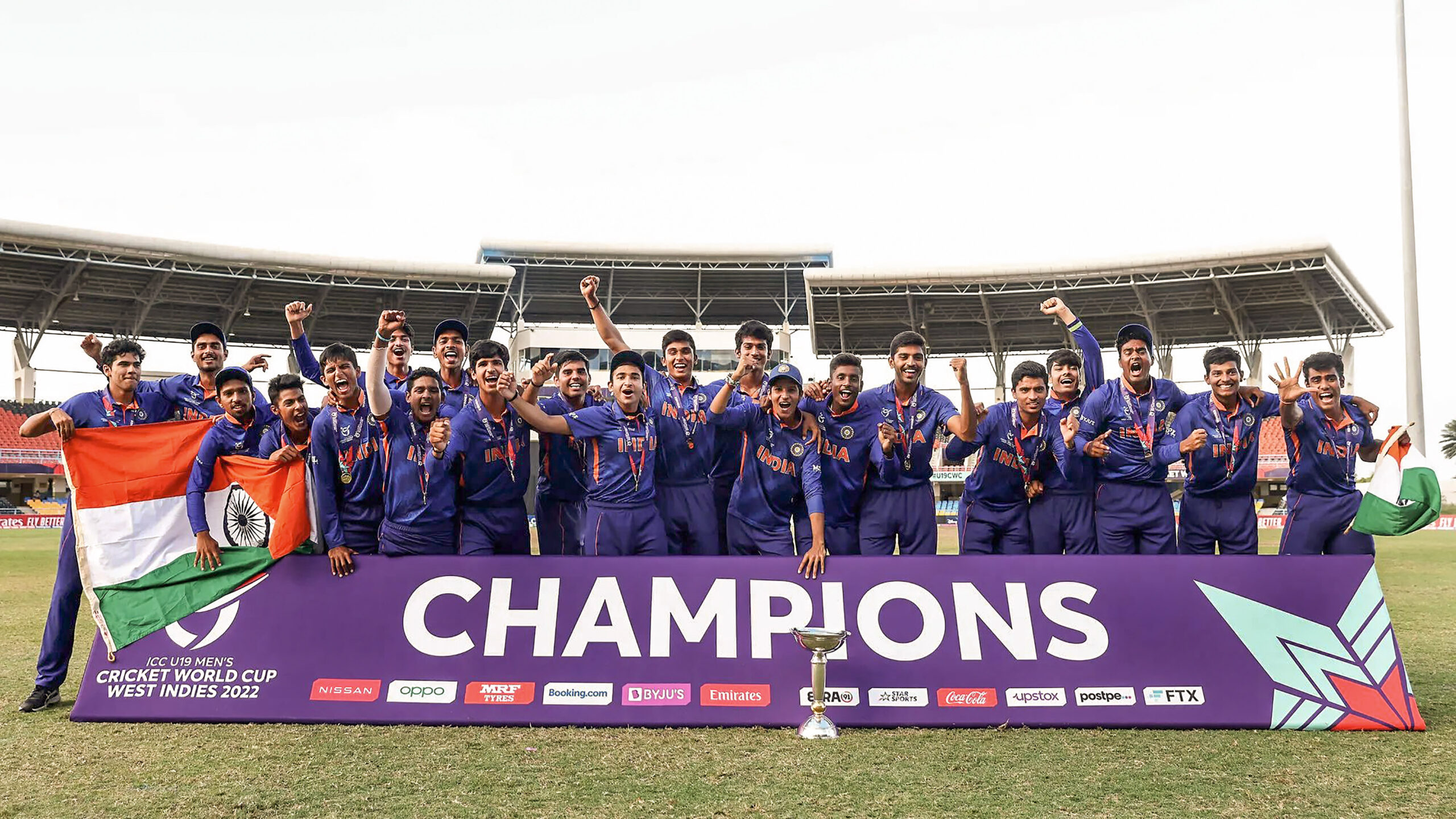 વેસ્ટ ઈન્ડિઝમા અંડર 19 વર્લ્ડ કપમાં ચેમ્પિયન બનેલી ભારતીય ટીમના ખેલાડીઓનું ભારતમાં આગમન થયા બાદ અમદાવાદના નરેન્દ્ર મોદી ક્રિકેટ સ્ટેડિયમમાં બોર્ડ દ્વારા સન્માન કરવામાં આવશે. કેપ્ટન યશ ધૂલના નેતૃત્વમાં ભારતની ટીમે ઈંગ્લેન્ડ સામે ચાર વિકેટે વિજય મેળવ્યો હતો. ભારતની ક્રિકેટ ટીમ પણ હાલમાં અમદાવાદમાં વેસ્ટ ઈન્ડિઝ સામે વનડે શ્રેણી રમી રહી છે. એક અંદાજ મુજબ રવિવારે યુવા ટીમ ભારત પરત ફરી શકે છે. ત્યારબાદ 10 ફેબ્રુઆરીએ તેમનું અમદાવાદમાં સન્માન કરાશે. જો કે બાયો બબલ અસ્તિત્વમાં હોવાથી રોહિત શર્માની ટીમ સાથે યુવા ખેલાડીઓને મુલાકાત કરવાની તક મળશે કે કેમ તે અંગે કોઈ સ્પષ્ટતા કરવામાં આવી નથી.