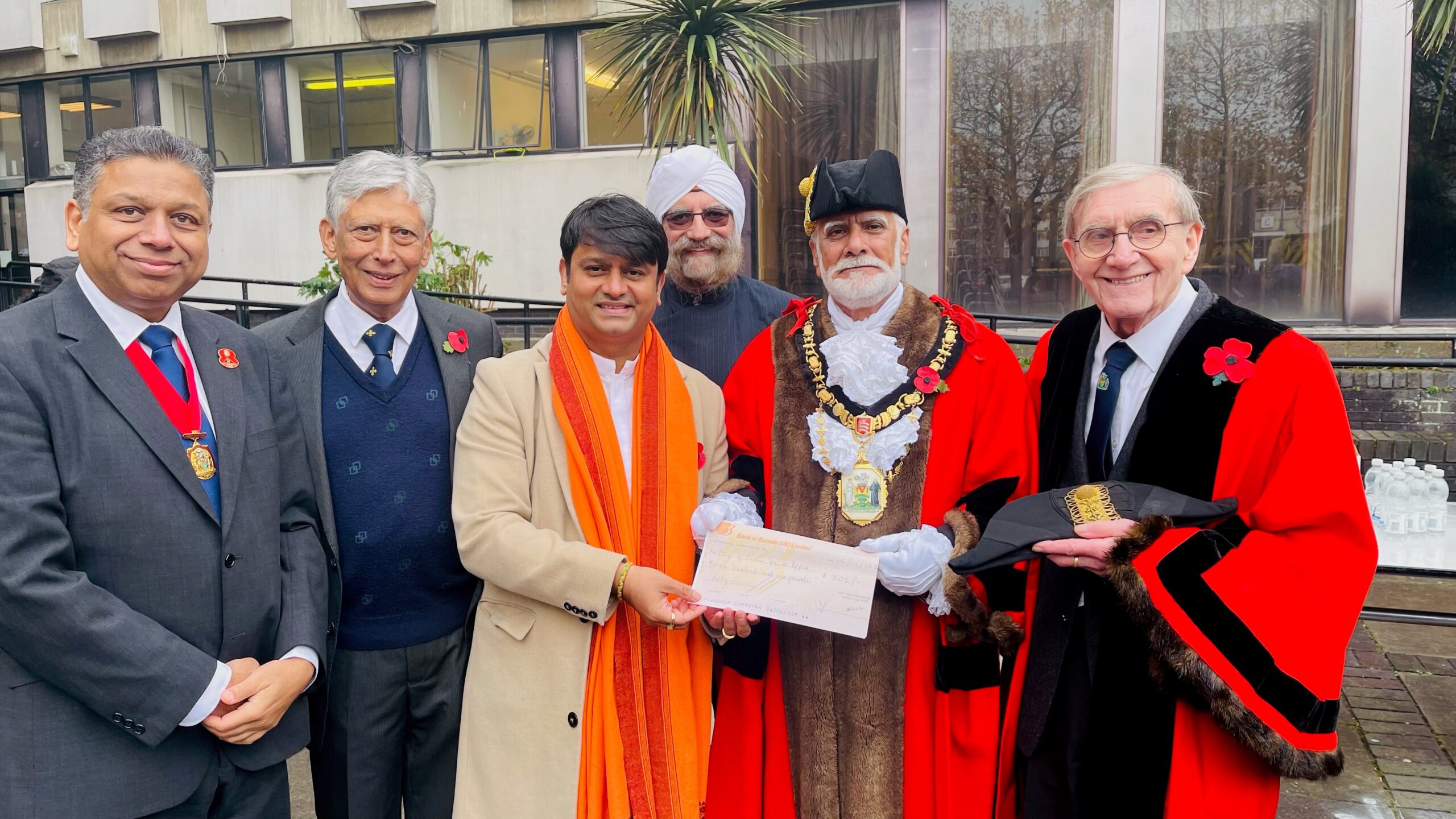 માનવધર્મમાં વિશ્વાસ કરતી અને હંમેશા વિવિધ રીતે સમાજને સહયોગી બનતી સંસ્થા ઇન્ટરનેશનલ સિદ્ધાશ્રમ શક્તિ સેન્ટર, હૅરો દ્વારા હિન્દુધર્મના નૂતન વર્ષની શરૂઆતમાં રવિવાર ૧૪ નવેમ્બરના રોજ સિદ્ધાશ્રમના દરેક ટ્રસ્ટીઓ વતી સંસ્થાના સંસ્થાપક સનાતન ધર્મભુષણ શ્રી રાજરાજેશ્વર ગુરુજીએ હૅરોના મેયરની ચેરિટી માટે મેયર શ્રી ગઝનફર અલીને ચેક એનાયત કર્યો હતો.