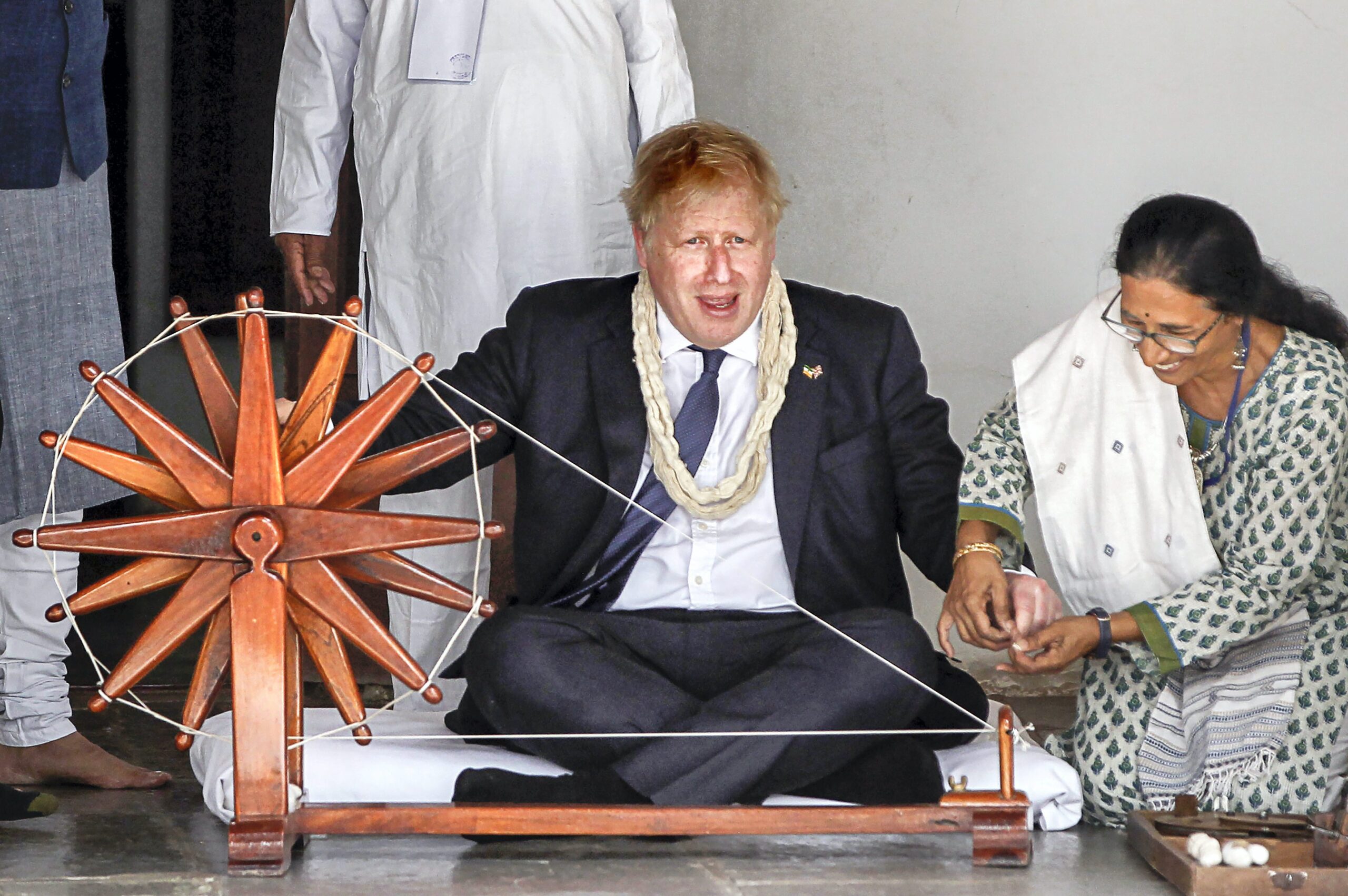 યુકેના વડાપ્રધાન બોરિસ જોન્સને અમદાવાદમાં આવ્યા બાદ ગાંધી આશ્રમ તરીકે જાણીતા સાબરમતી આશ્રમની મુલાકાત લીધી હતી. અહીં તેમણે બ્રિટિશ શાસનથી ભારતની આઝાદીની ચળવળનો પ્રતિક બનેલો ચરખો કાંત્યો હતો. જોન્સનને ચરખાની પ્રતિકૃતિ પણ ભેટમાં આપવામાં આવી હતી.