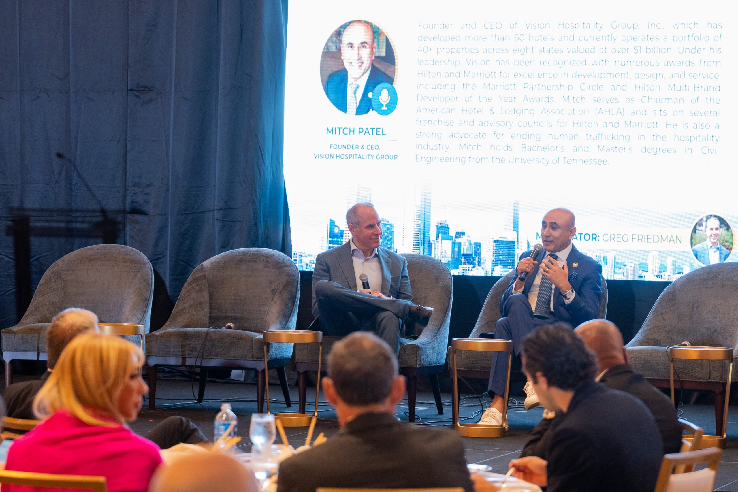 HVS ના સિનિયર મેનેજિંગ ડિરેક્ટર જોન લેન્સેટએ ફ્લોરિડા હોસ્પિટાલિટી માર્કેટ આઉટલુક રજૂ કર્યો, જેમાં મૂલ્યાંકન વલણો અને વ્યવહારની આંતરદૃષ્ટિની રૂપરેખા આપવામાં આવી. આ કાર્યક્રમમાં ફ્રીડમેન દ્વારા સંચાલિત પટેલ સાથે વિઝન હોસ્પિટાલિટીના ઇતિહાસ, રોકાણ વ્યૂહરચના અને હોટેલ માલિકો અને બ્રાન્ડ્સ વચ્ચેના વિકસતા સંબંધો પર વાતચીતનો સમાવેશ થતો હતો.