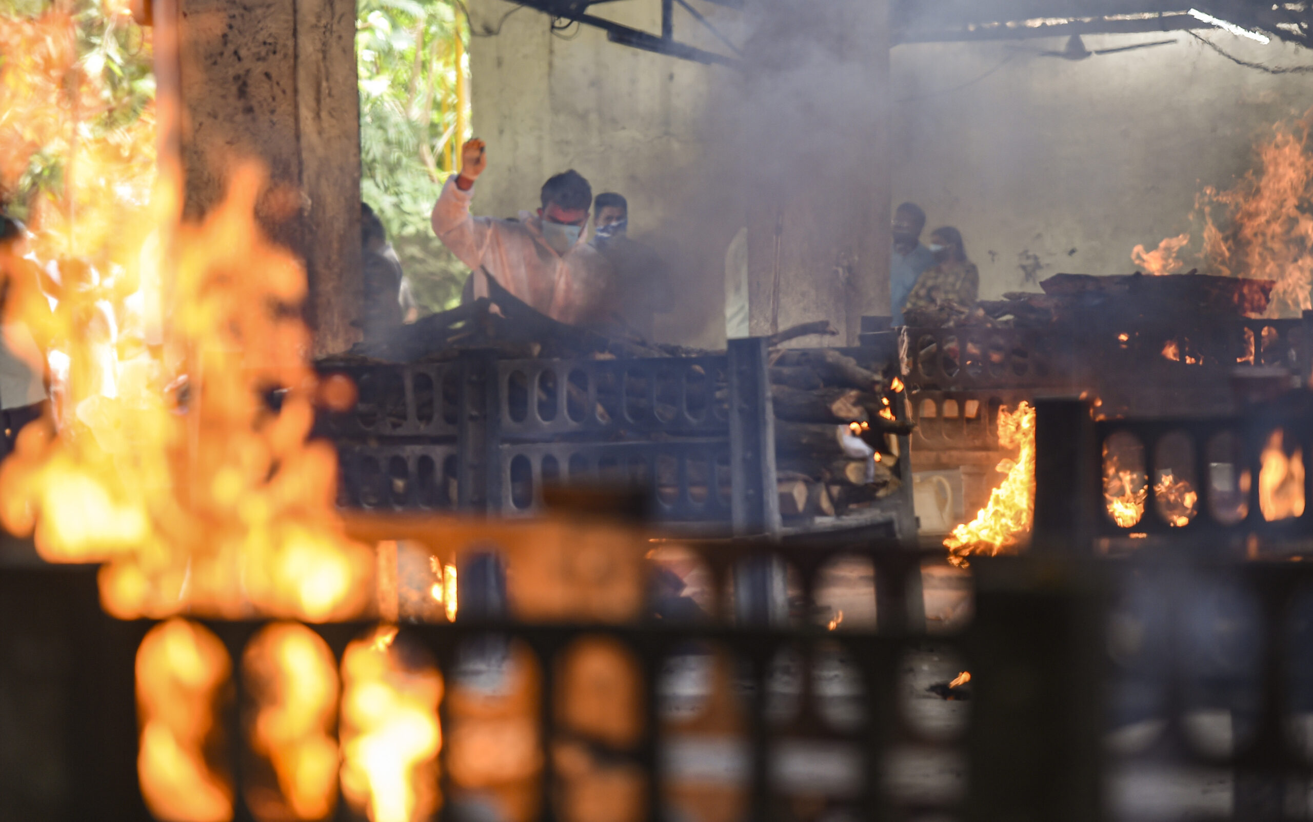 મુંબઈના વિરારમાં વિજય વલ્લભ હોસ્પિટલમાં આગને કારણે મૃત્યુ પામેલા કોરોના દર્દીઓની 13 એપ્રિલ 2021ના રોજ અંતિમવિધિ કરવામાં આવી હતી. (PTI Photo/Kunal Patil)