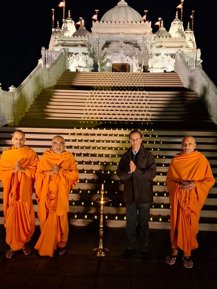 આ ઉજવણીમાં સંતો, યુકેમાં ભારતના ડેપ્યુટી હાઈ કમિશનર કાર્તિક પાંડે, ભક્તો, સમુદાયના સભ્યો અને મહાનુભાવો ઉપસ્થિત રહ્યા હતા અને સૌએ મંદિરની બહાર ઔપચારિક રીતે દીવા પ્રગટાવ્યા હતા.