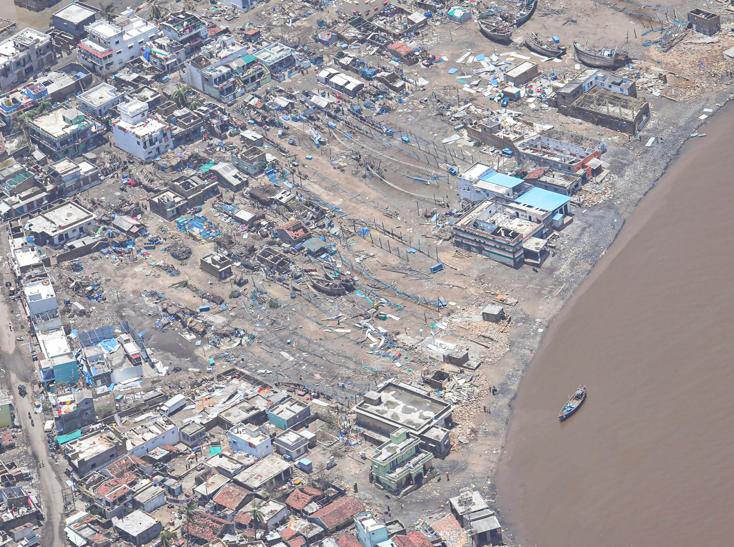 વાવાઝોડાગ્રસ્ત વિસ્તારોની વડાપ્રધાન નરેન્દ્ર મોદીની હવાઇ સર્વેક્ષણ દરમિયાનની તસવીર (PTI Photo)