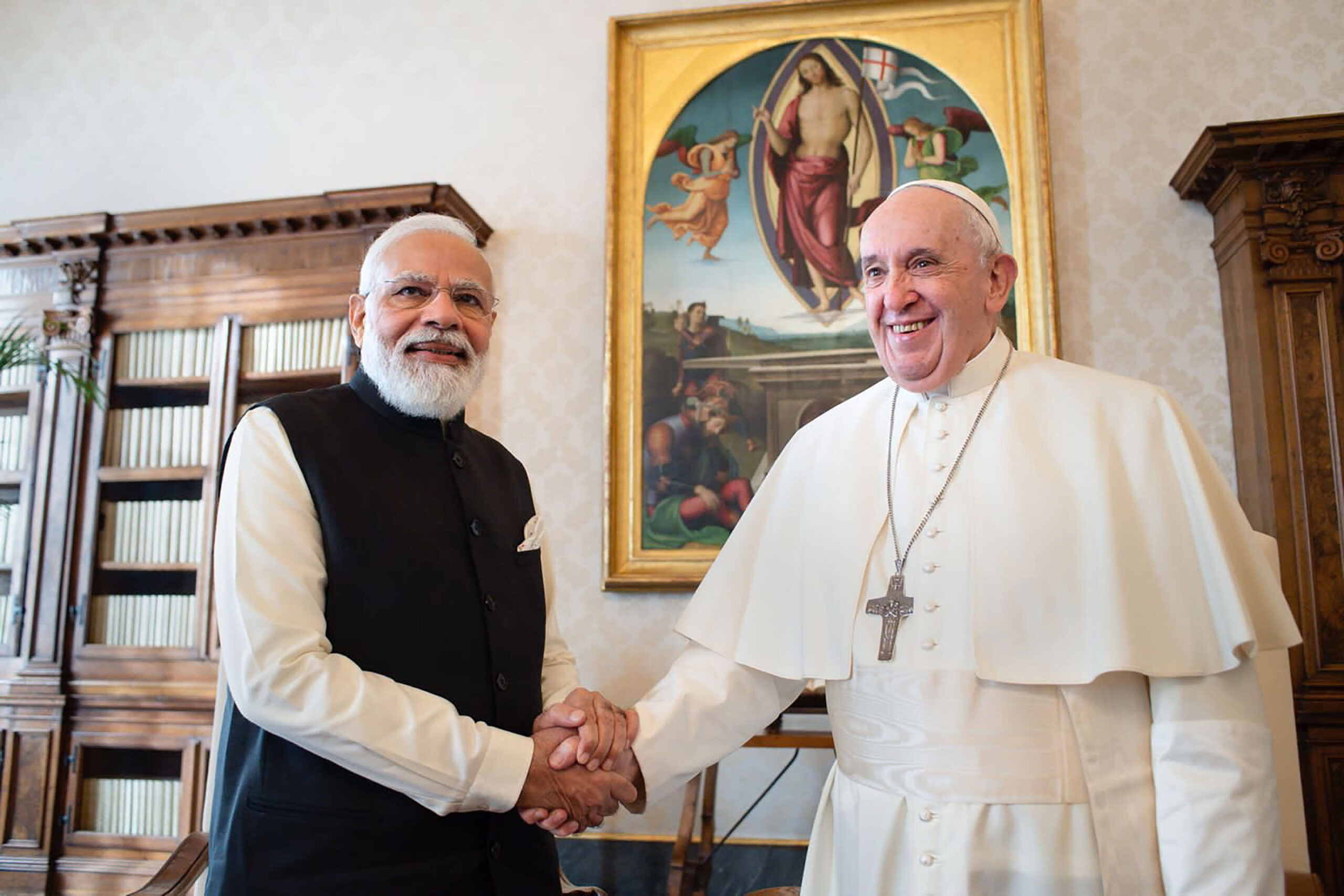 વેટિકનમાં ભારતના વડાપ્રધાન નરેન્દ્ર મોદી અને પોપ ફ્રાન્સિસ વચ્ચેની મુલાકાતને આવકારતા આરએસએસએ જણાવ્યું હતું કે આ મુલાકાતથી રાષ્ટ્રની પ્રતિષ્ઠામાં વધારો થશે.