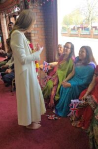 કાસલ ડોનિંગ્ટન પોસ્ટમાસ્ટર દંપતી પોસ્ટમાસ્ટર ચાન બજારિયા મંદિરના ટ્રસ્ટી છે અને તેમના પત્ની પોસ્ટમિસ્ટ્રેસ મીના બજારિયાએ ભાવિ રાણીને હોળીના તહેવાર, ભારતીય નૃત્ય અને વારસા વિશે માહિતી આપી હતી. ત્યારબાદ રાજકુમારીએ મંદિરમાં વોલંટીયર્સ અને દર્શનાર્થીઓ સાથે ભારતીય ભોજનનો આનંદ માણ્યો હતો.