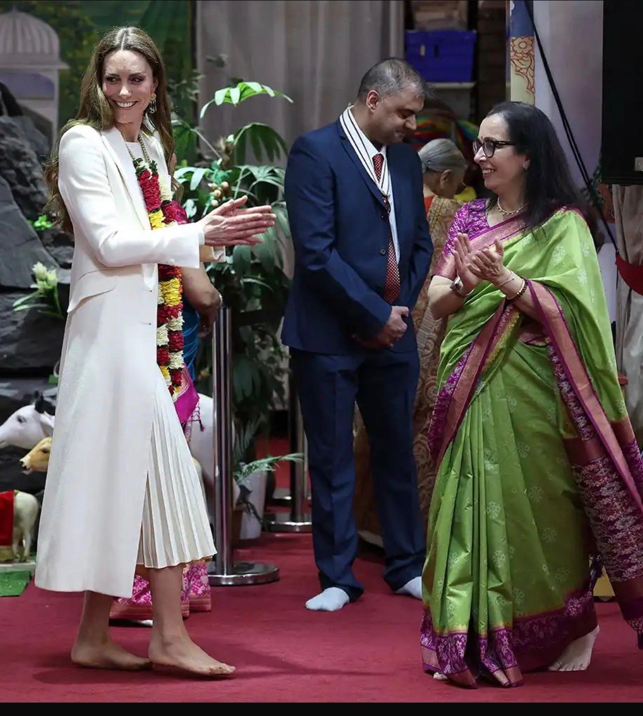 કેટે સોથી છેલ્લે સ્થાનિક વૈષ્ણવ સમુદાયના હિન્દુ મંદિર શ્રીજી ધામ હવેલીની મુલાકાત લીધી હતી અને શાહી શિષ્ટાચારને ત્યજીને મહિલાઓના જૂથ રંપરાગત ગરબા નૃત્યમાં જોડાવા પોતાની હાઇ હીલ (ચપ્પલ) ઉતાર્યા હતા. લયબદ્ધ વર્તુળમાં ખુલ્લા પગે ફરતી વખતે તેમને હસતા જોઇ સૌ આનંદિત થઇ ગયા હતા. જેના ફૂટેજ ભારત અને અમેરિકા સહિત વિશ્વના ઘણા દેશોમાં બતાવવામાં આવ્યા હતા.