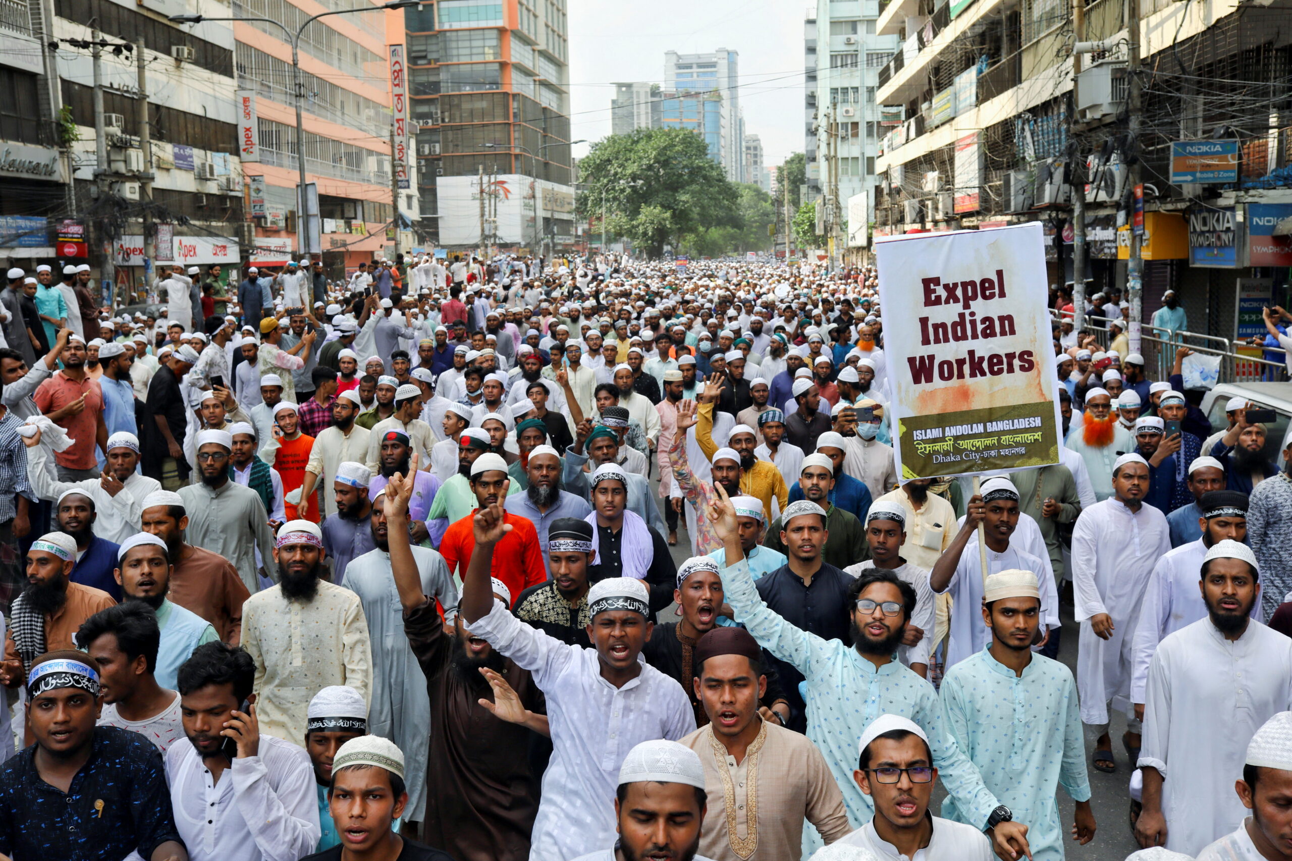 મહંમદ પયગંબર સાહેબ અંગેની ભાજપના બે નેતાઓની વિવાદાસ્પદ ટીપ્પણીના વિરુદ્ધમાં મુસ્લિમોએ શુક્રવારની નમાઝ પછી ઢાકામાં ભારે વિરોધ પ્રદર્શનો કર્યા હતા REUTERS/Mohammad Ponir Hossain
