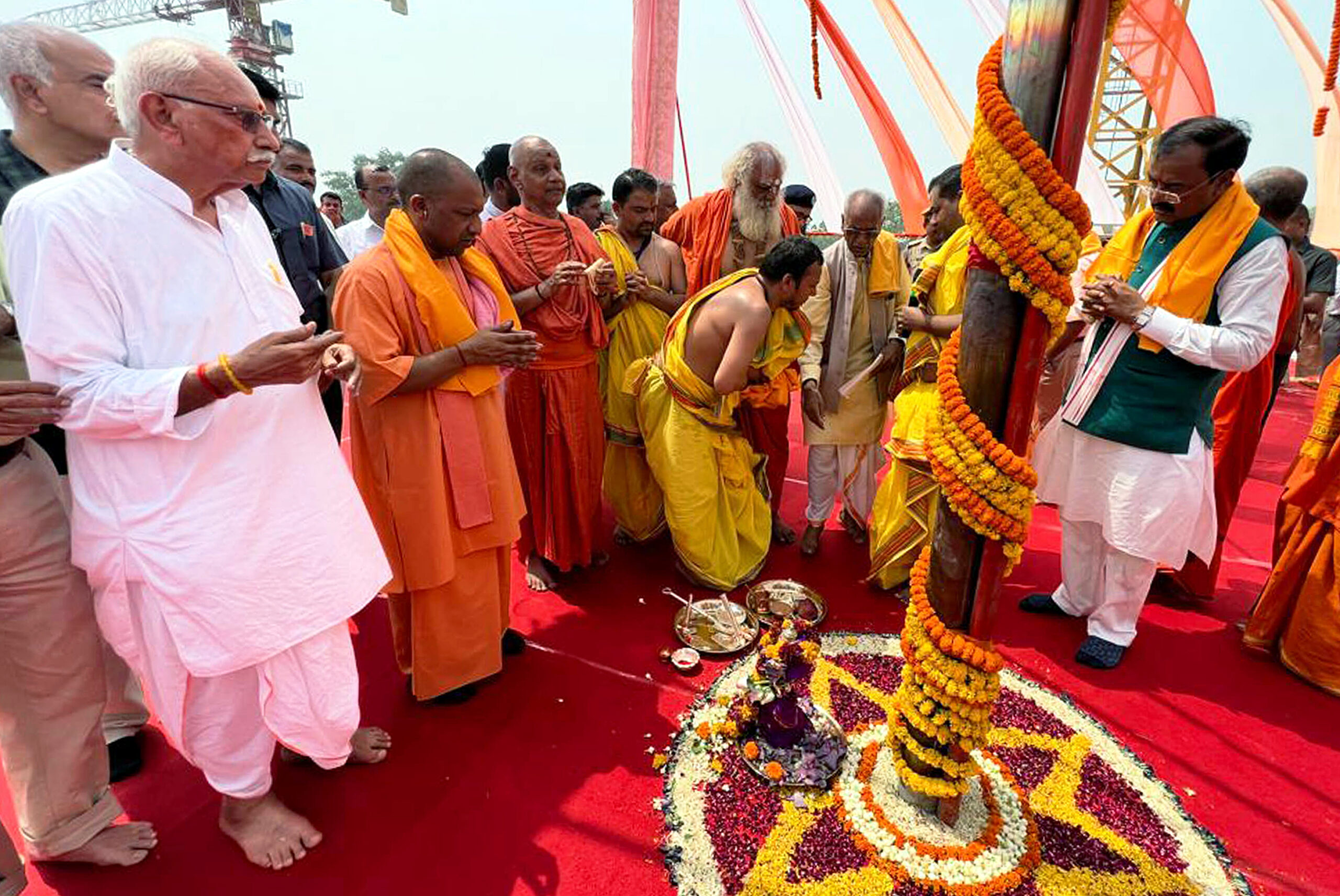 ઉત્તરપ્રદેશના મુખ્યપ્રધાન યોગી આદિત્યનાથે બુધવાર, 1 જૂને અયોધ્યા ખાતેના રામમંદિરના ગર્ભગૃહની આધારશિલા મૂકી હતી. (ANI Photo)
