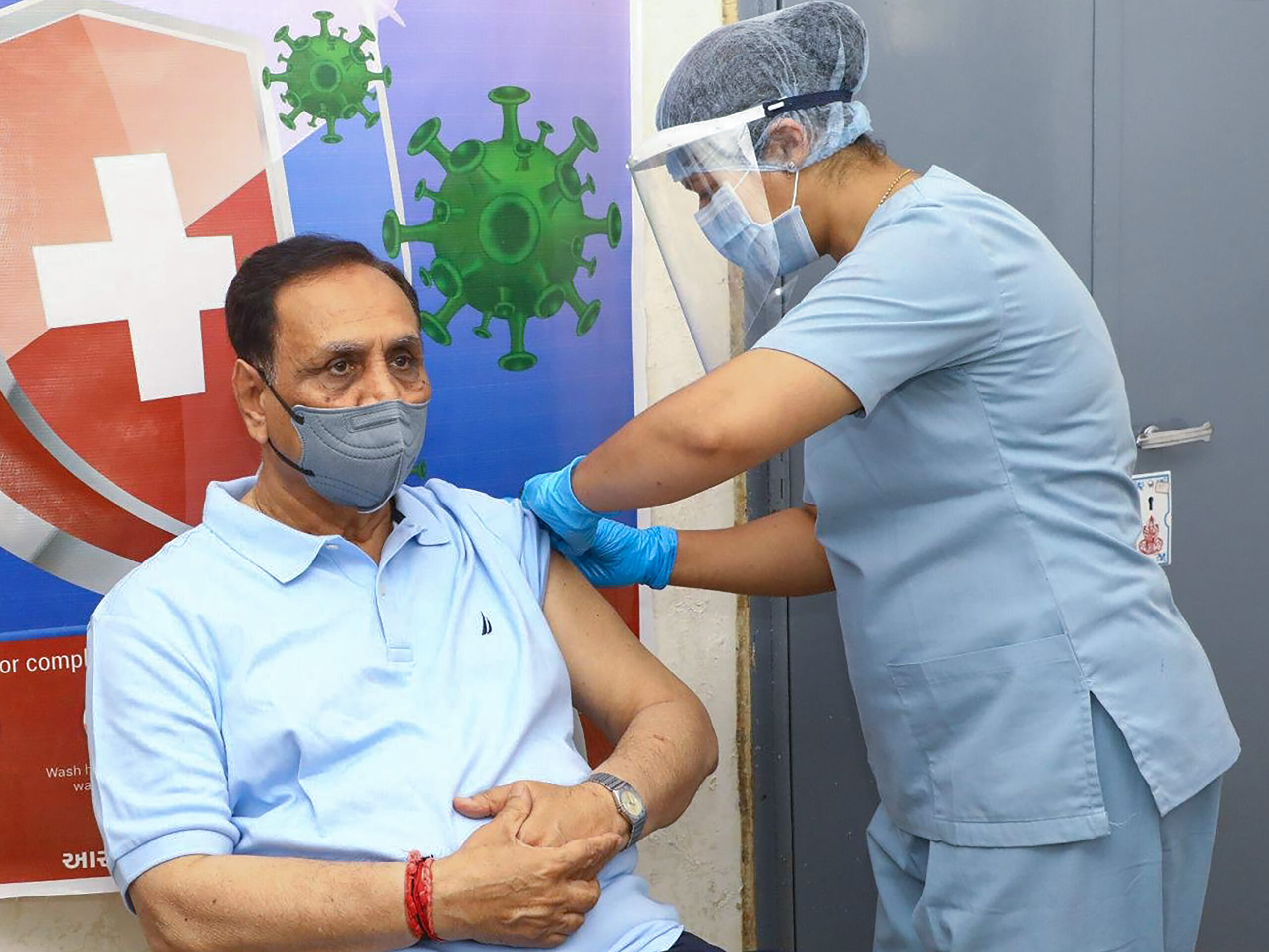 ગુજરાતના મુખ્યપ્રધાન વિજય રૂપાણીએ બુધવારે ગાંધીનગરમાં કોરોના વેક્સીનનો પ્રથમ ડોઝ લીધો હતો. મુખ્યપ્રધાન કાર્યાલયના ટ્વીટર હેન્ડલ પર તેની માહિતી આપવામાં આવી હતી.