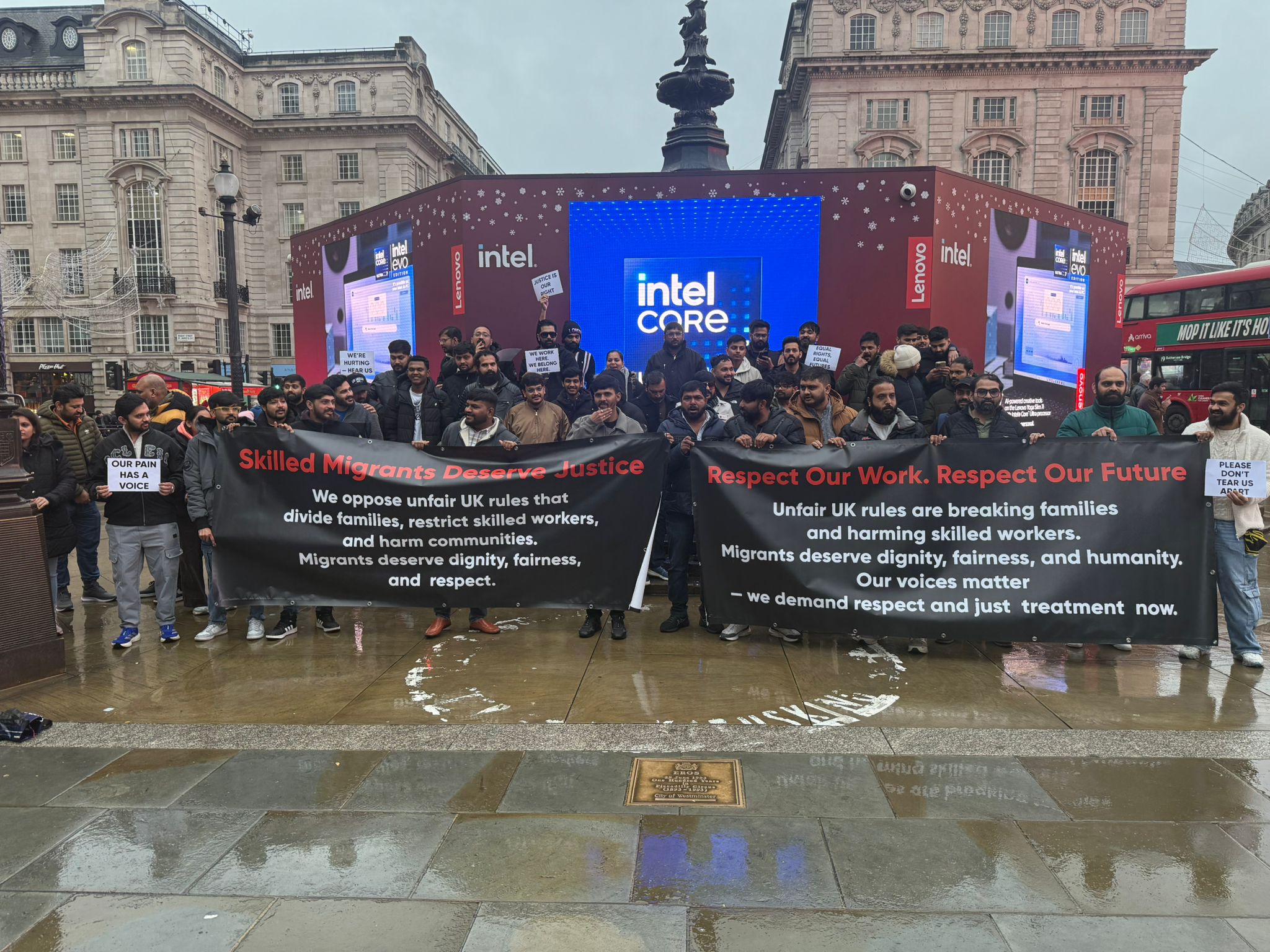 સ્પોન્સર્ડ વર્ક પરમીટ અને અન્ય સ્કીલ્ડ વિઝા પર આવેલા ભારત અને અન્ય દેશોના લોકો માટે કાયમી વસવાટ – ઇન્ડેફીનેટ લીવ ટૂ રીમેન (ILR) માટેના સમયગાળામાં વધારો કરવાની દરખાસ્તોને પગલે લંડનના સ્કીલ્ડ માઇગ્રન્ટ યુનિયન ગૃપ દ્વારા તા. 7ના રોજ સેન્ટ્રલ લંડનના પીકાડેલી સર્કસ ખાતે દેખાવો કરવામાં આવ્યા હતા.