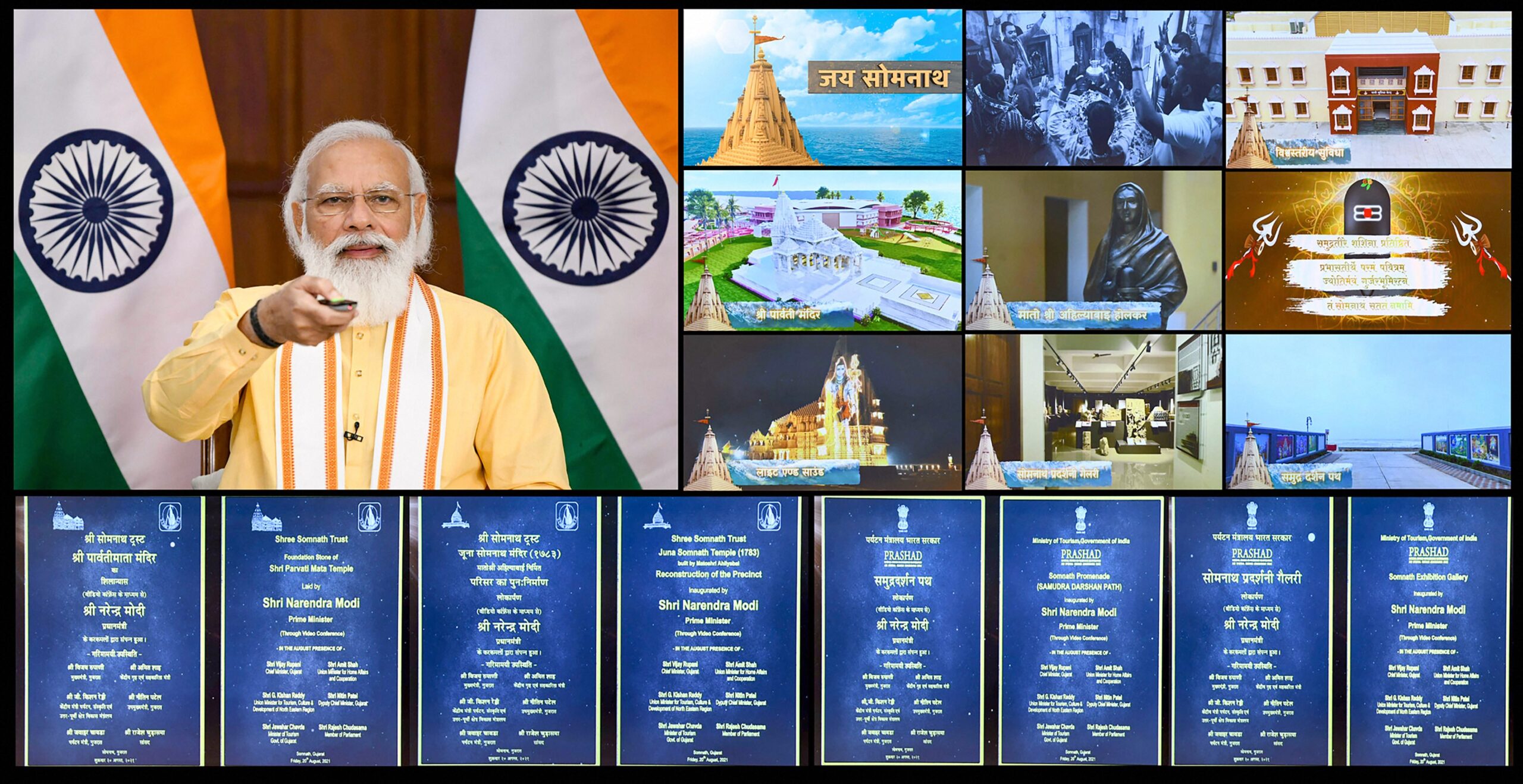 વડાપ્રધાન નરેન્દ્ર મોદીએ નવી દિલ્હીમાંથી શુક્રવારે પ્રસિદ્ધ યાત્રાધામ સોમનાથમાં વિકાસના પ્રોજેક્ટ્સનું ઇ-લોકાર્પણ કર્યું હતું. નરેન્દ્ર મોદીએ જય સોમનાથ સાથે સોમનાથ પ્રદર્શન ગેલેરી, જૂનું સોમનાથ મંદિર અને વૉક વેનું લોકાર્પણ કર્યું હતું અને શ્રી પાર્વતી મંદિરનો શિલાન્યાસ કર્યો હતા.