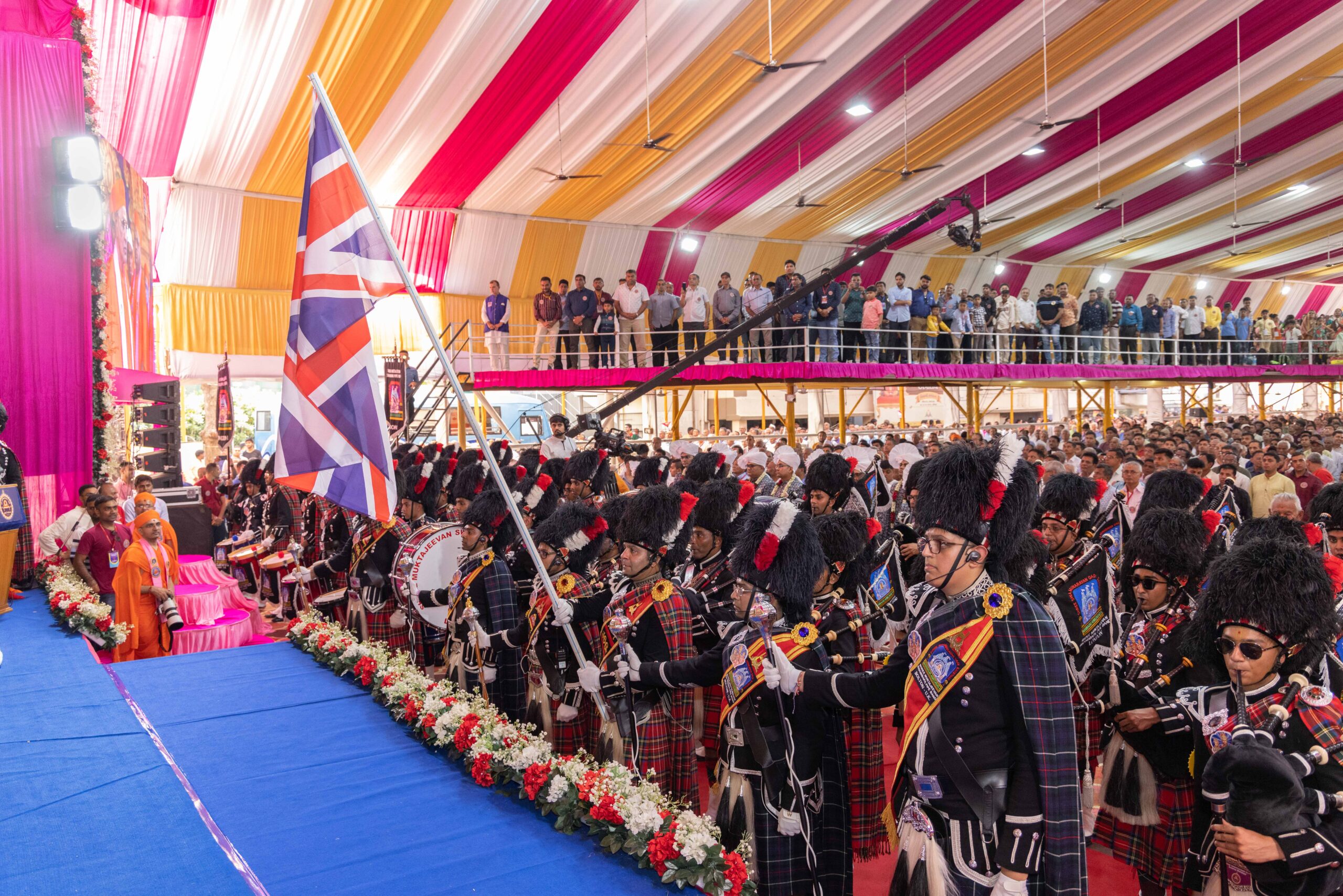 અમદાવાદમાં મણીનગર ખાતે શ્રી સ્વામિનારાયણ ગાદી સંસ્થાન દ્વારા શ્રી સ્વામિનારાયણ ગાદી સુવર્ણ મહોત્સવ અંતર્ગતસાત દિવસીય ધર્મોત્સવનું આયોજન કરવામાં આવ્યું હતું. આ દરમિયાન લંડનમાં રાણી એલિઝાબેથની અંતિમ વિધિ વખતે અમદાવાદમાં મુખ્ય પ્રધાન ભૂપેન્દ્રભાઇ પટેલ અને સંસ્થાનના આચાર્ય જિતેન્દ્રીયપ્રિય સ્વામી મહારાજની અધ્યક્ષતામાં શ્રી મુક્તજીવન પાઇપ બેન્ડ દ્વારા બ્રિટિશ રાષ્ટ્રગીત વગાડીને તેમને શ્રદ્ધાંજલિ અર્પણ કરવામાં આવી હતી અને કિંગ ચાર્લ્સ તૃતીયની વરણીની ઉજવણી કરી હતી. લંડન અને બોલ્ટનના આ પાઇપ બેન્ડમાં 120 બ્રિટિશ ઇન્ડિયન પાઇપર્સ અને ડ્રમર્સ છે. આ બેન્ડને રાજવી પરિવાર સમક્ષ રાણીની સુવર્ણ, હીરક અને પ્લેટિનમ જ્યુબિલી વખતે ભારતનું પ્રતિનિધિત્વ કરવાનું સન્માન મળ્યું છે. આ અવસરે મોટી સંખ્યામાં સમગ્ર ભારત, યુકે, નોર્થ અમેરિકા, આફ્રિકા અને ઓસ્ટ્રેલિયામાંથી હજારો હરિભક્તો આવ્યા છે.