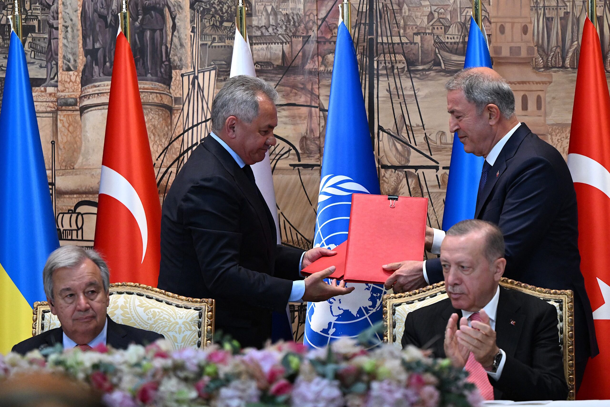 સામસામે યુદ્ધ લડી રહેલા રશિયા અને યુક્રેને અનાજ અને ફર્ટિલાઇઝરની નિકાસ માટે યુએન સાથે સમજૂતી કરી છે. બંને દેશોએ તુર્કી અને યુનાઇટેડ નેશન્સ સાથે જુદા જુદા કરાર પર હસ્તાક્ષર કરતા આ યુદ્ધગ્રસ્ત દેશોમાંથી લાખ્ખો ટન અનાજની નિકાસનો માર્ગ મોકળો થશે અને વૈશ્વિક અન્ન સંકટને હળવું કરવામાં મદદ મળશે. રશિયા-યુક્રેન યુદ્ધને કારણે અનાજની નિકાસ બંધ થઈ હતી. રશિયાના સંરક્ષણ પ્રધાન સર્ગેઇ શોઇગુ અને યુક્રેનના ઇન્ફ્રાસ્ટ્રક્ચર પ્રધાન ઓલેકસન્દર કુબ્રાકોવે યુએના સેક્રેટરી એન્ટોનિયો ગુટેરેસ અને તુર્કીના સંરક્ષણ પ્રધાન હુલુસી અકાર સાથે જુદી જુદી સમજૂતી પર હસ્તાક્ષર કર્યા હતા. આ પ્રસંગે તુર્કીના વડાપ્રધાન અર્દોગન હાજર રહ્યાં હતા. યુએનના સેક્રેટરી જનરલે આ સમજૂતીઓને સકારાત્મક ગણાવી હતી.